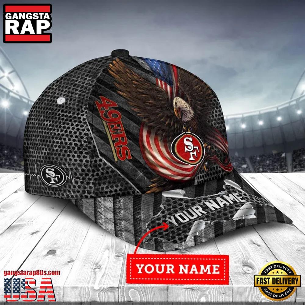 NFL Custom Name San Francisco 49ers Team Eagle US Flag Baseball Cap