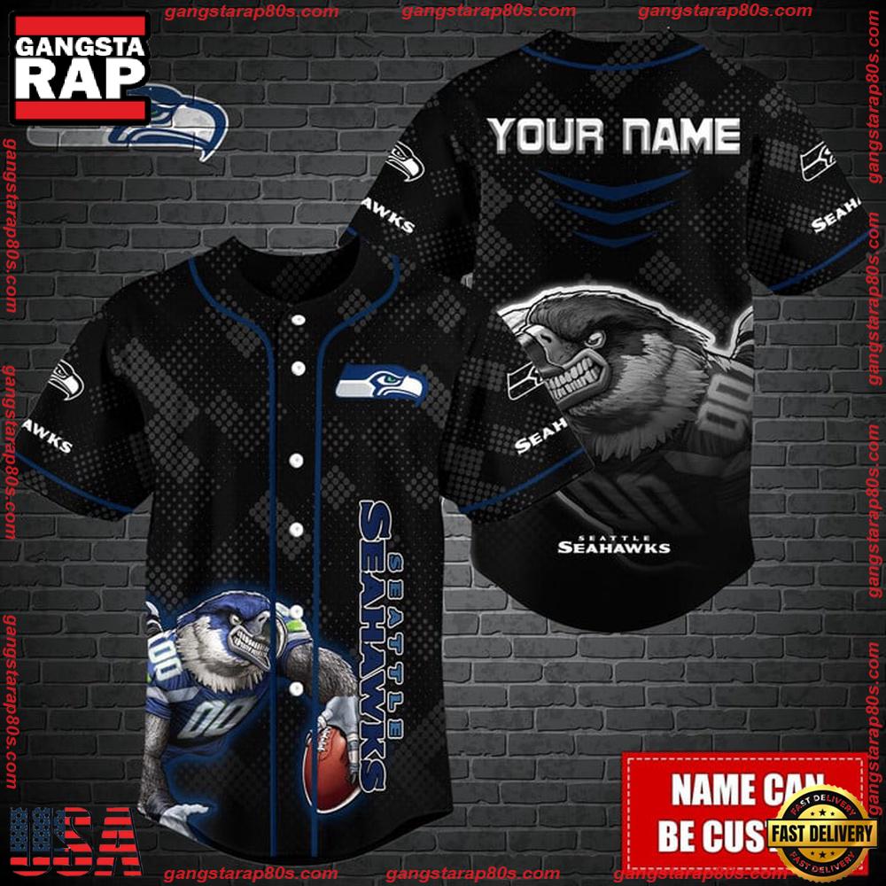 NFL Custom Name Seattle Seahawks Mascot Baseball Jersey