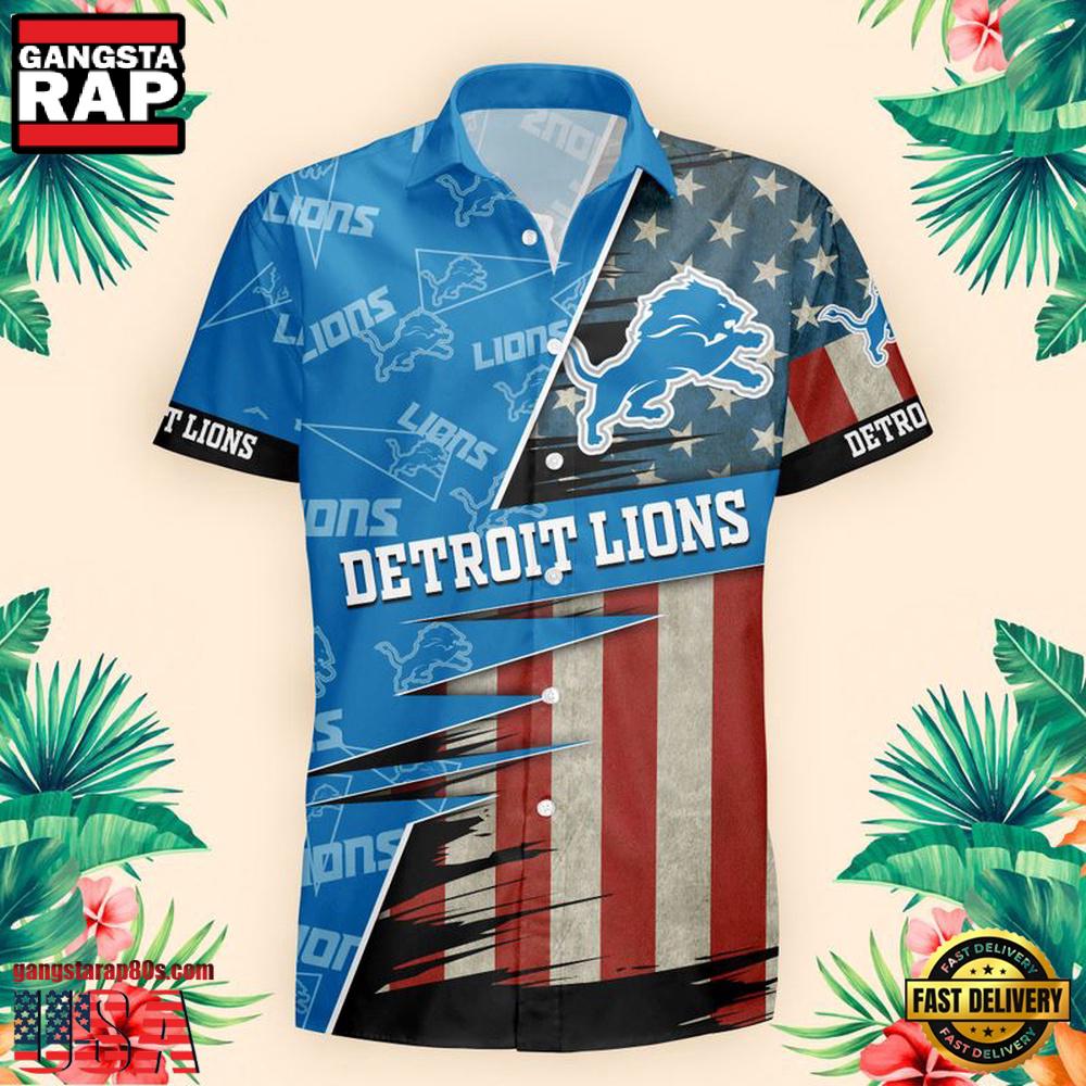 NFL Detroit Lions US Flag Pattern Hawaiian Shirt: Show Your Team Spirit with Style