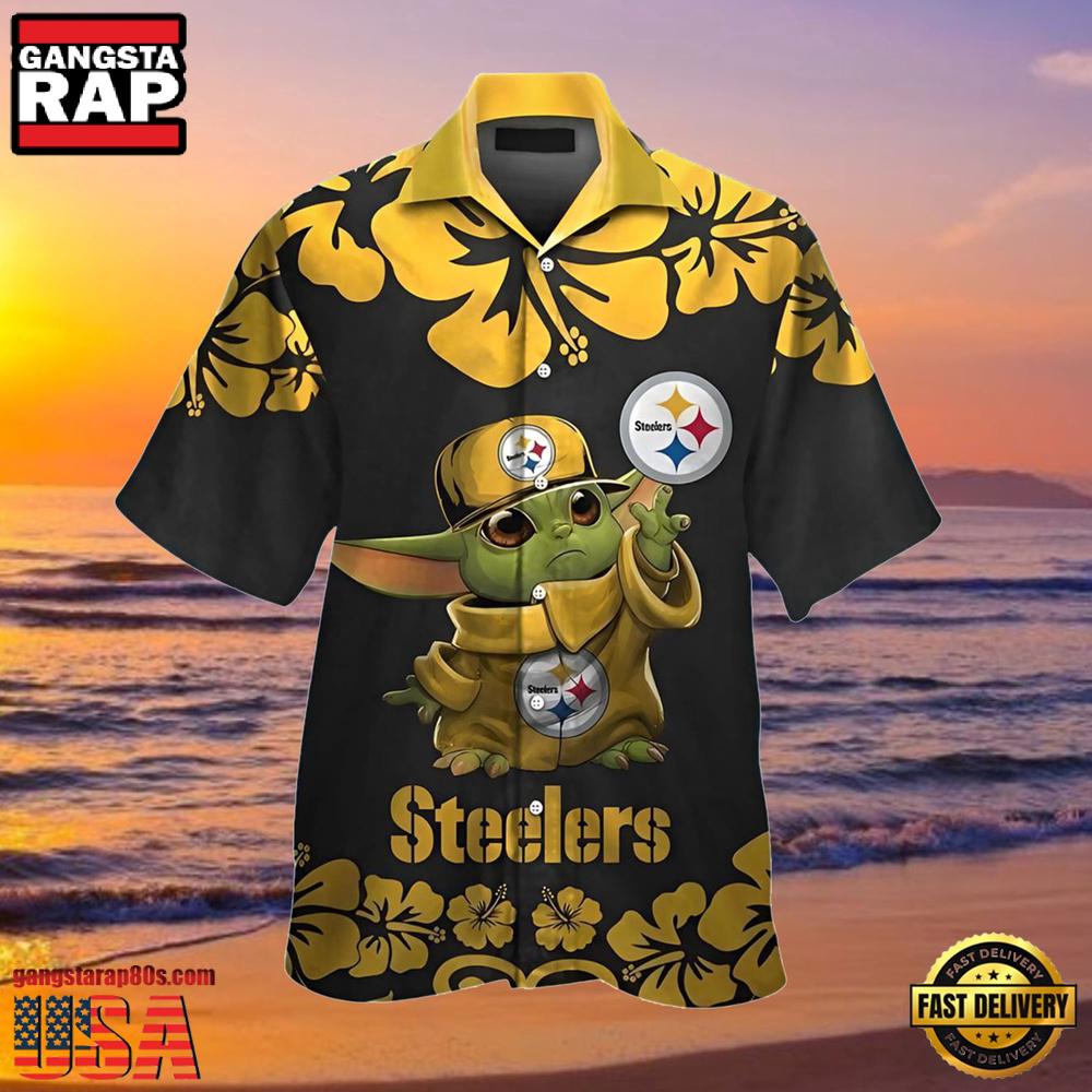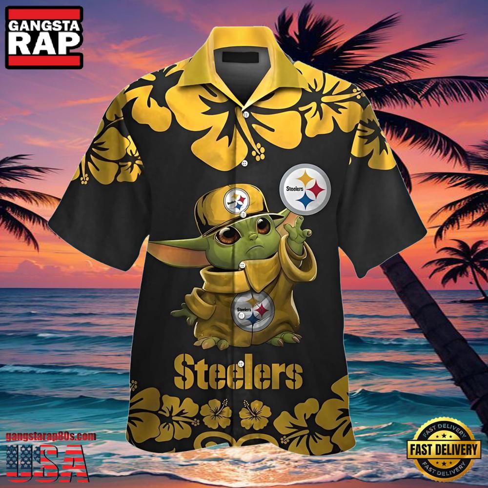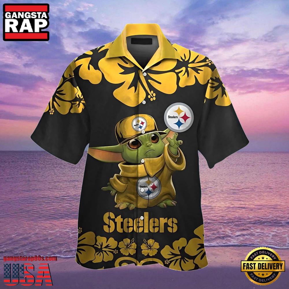 NFL Hawaiian Steelers Shirt with Baby Yoda Star Wars Tropical Aloha Design