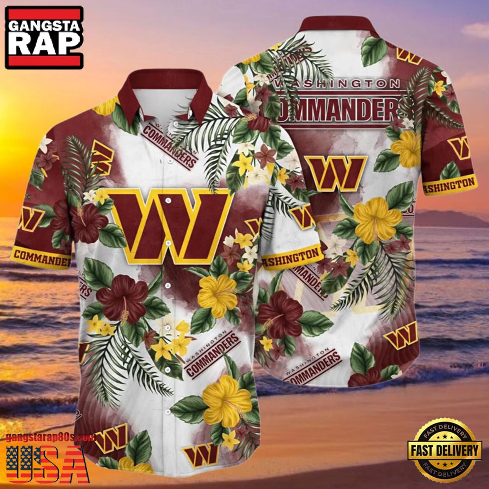Dive into the world of NFL fashion with the stunning Hington Commanders Hawaiian Shirt. This 2023 design epitomizes a blend of sporty spirit and tropical allure, making it an essential piece for any true fan’s collection. Featuring a vibrant tropical floral paradise motif, this shirt offers both style and comfort, perfect for those sunny days at the beach or casual outings with friends.