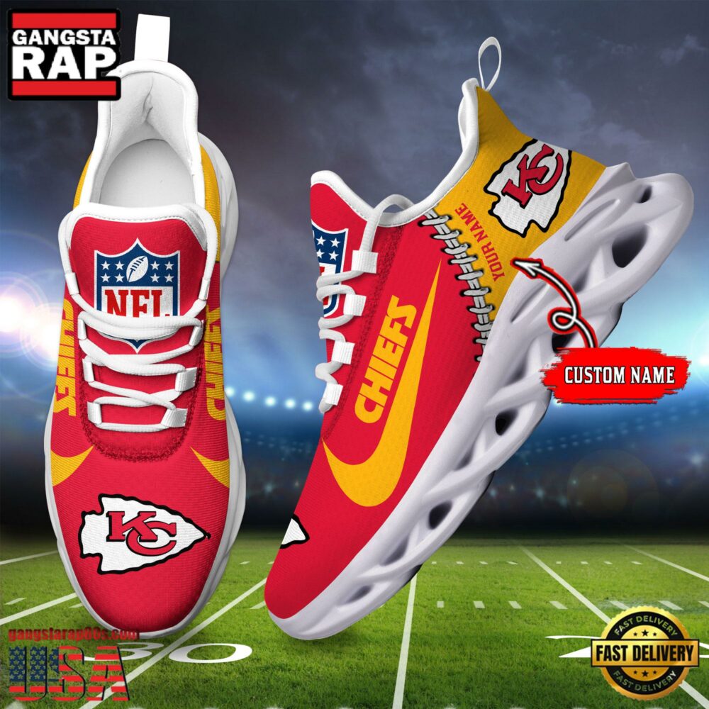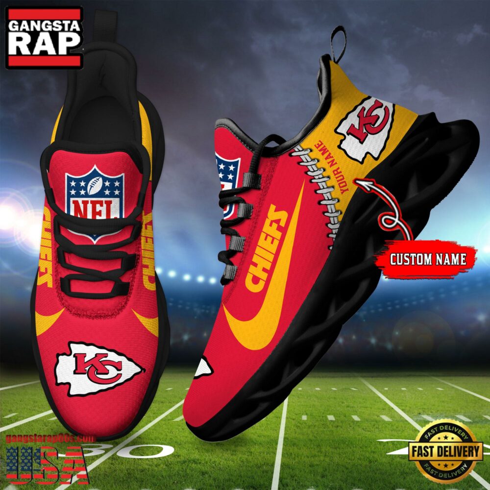 Introducing the latest NFL Kansas City Chiefs Football Team Design Max Soul Running Sneakers Shoes, the ultimate blend of team spirit and athletic functionality. For devoted fans yearning to exhibit their pride while enhancing their athletic performance, these sneakers bring both style and comfort to your training sessions and casual outings.