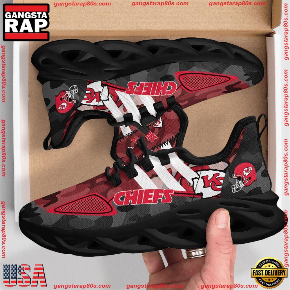 Embrace the blend of athletic performance and iconic team pride with the NFL Kansas City Chiefs Military Camouflage Max Soul Shoes Running Sneakers, a standout choice for showing your support this season. Whether you are a seasoned runner or a casual wearer, these sneakers provide everything you need to make a statement.
