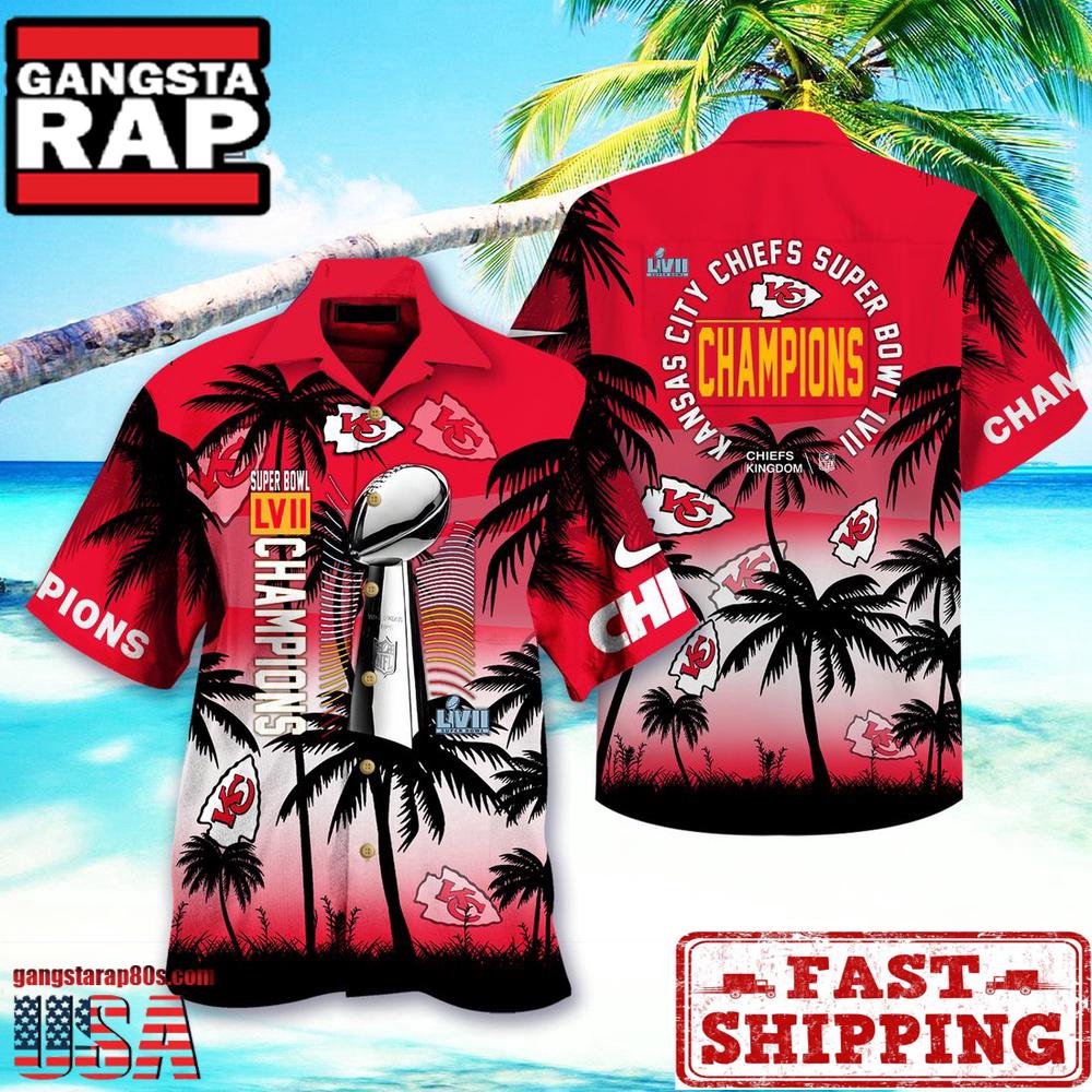 Elevate your game-day wardrobe with the bold and vibrant NFL Kansas City Chiefs Palm Tree New Design Hawaiian Shirt and Short. This exclusive new design captures the spirit of the 2023 season, offering fans a fresh way to showcase allegiance to their favorite team. Expertly crafted for style and comfort, this outfit is an ideal choice for those seeking a blend of casual flair and team pride.