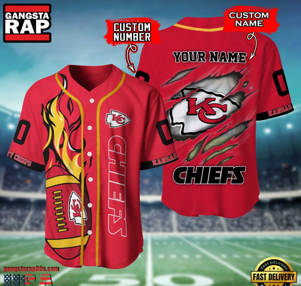 Photos Of NFL Kansas City Chiefs Team Logo Litmited Edition Baseball Jersey Shirt