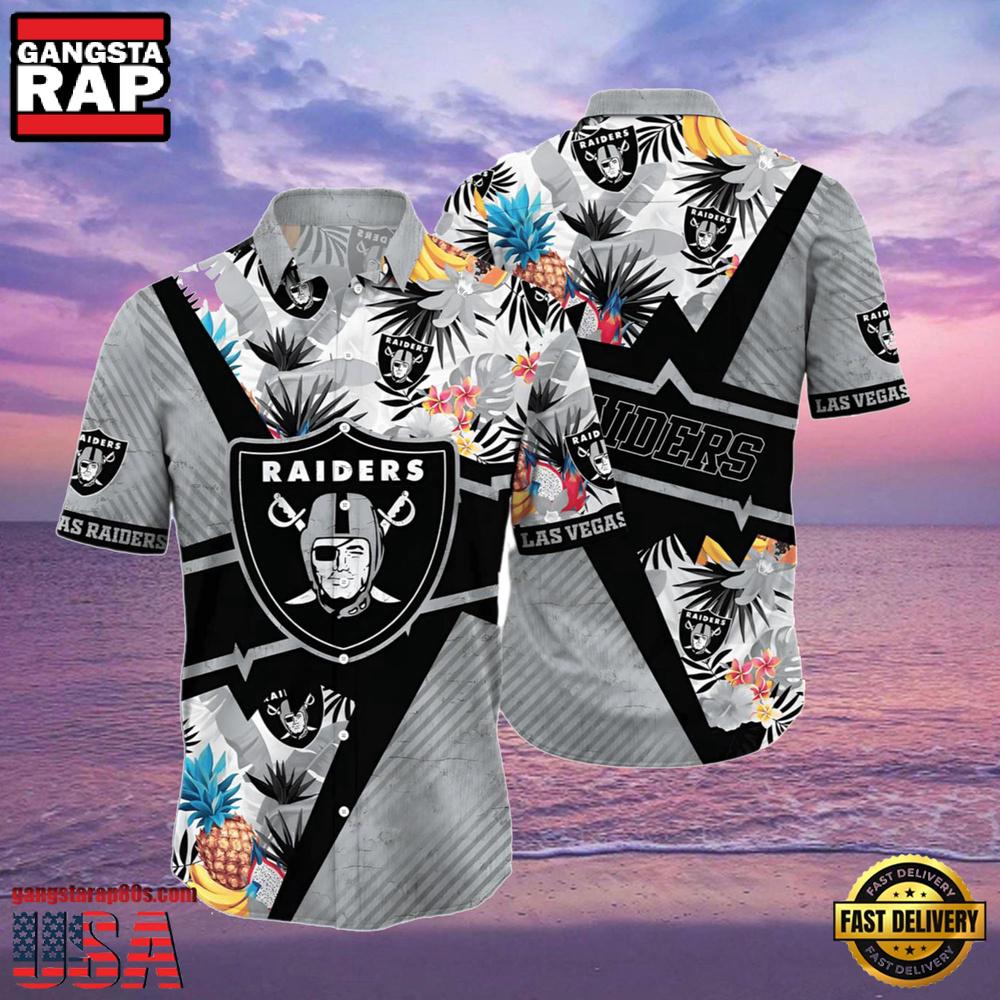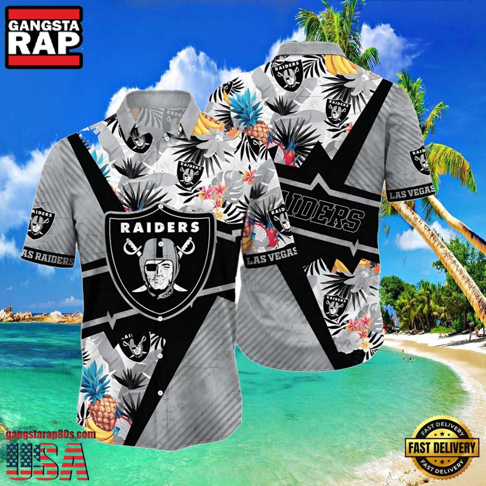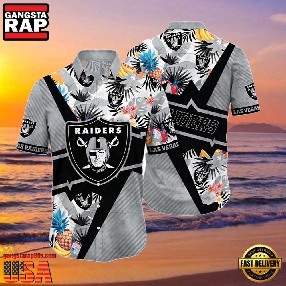 Crafted from high-quality, breathable fabric, this shirt ensures comfort during those intense game sessions or casual summer outings. The vibrant tropical design features the iconic Raiders’ logo, seamlessly blending traditional Hawaiian patterns with team pride, making it a standout addition to any fan’s wardrobe.