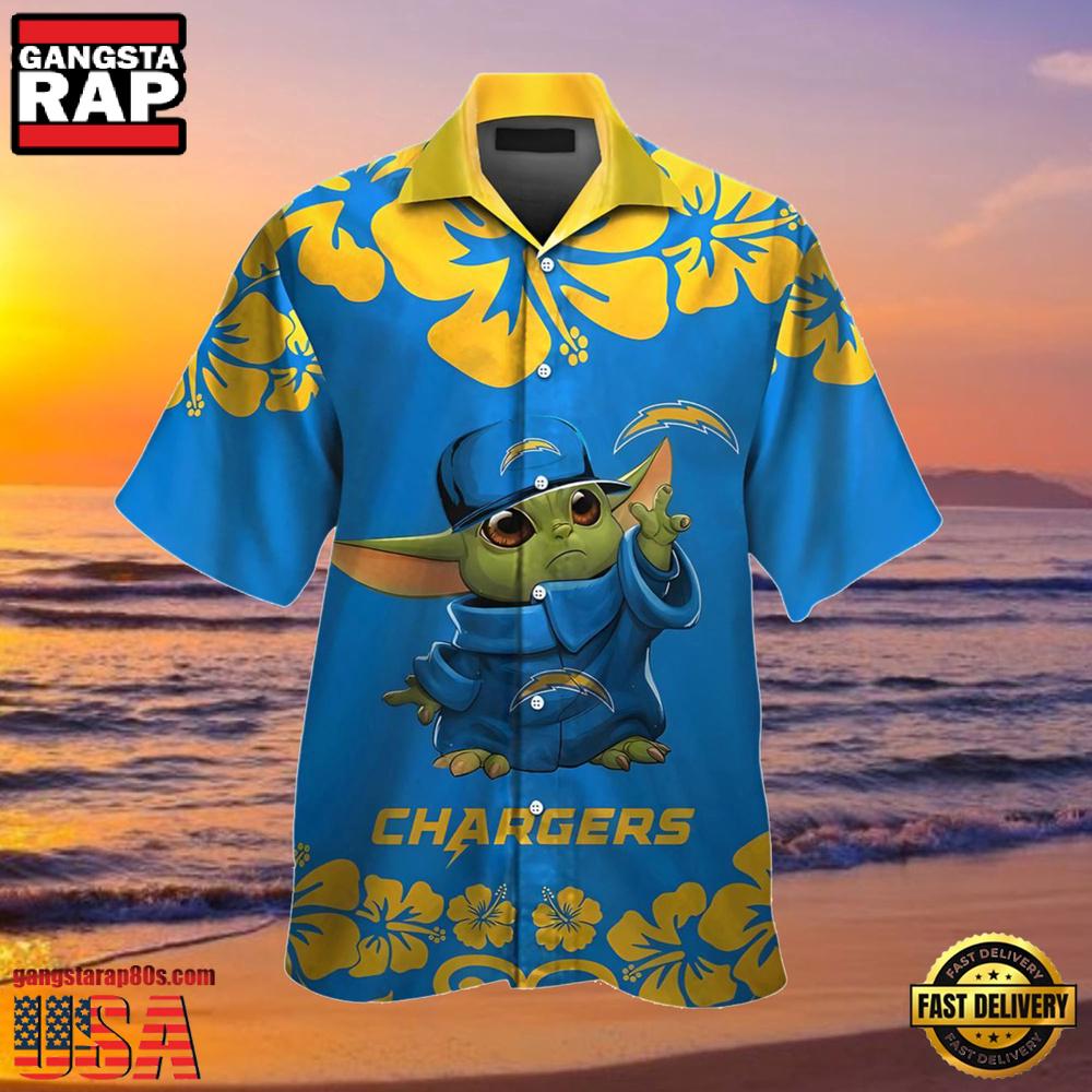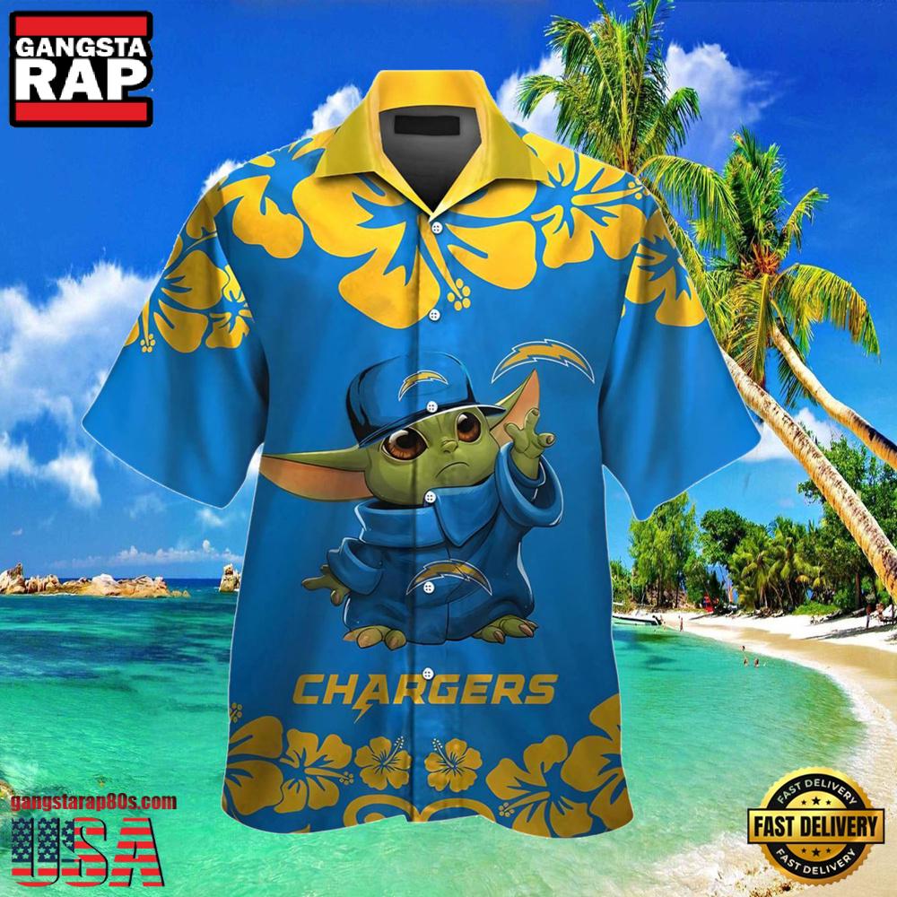 NFL Los Angeles Chargers Hawaiian Shirt Baby Yoda Hibiscus Tropical Pattern