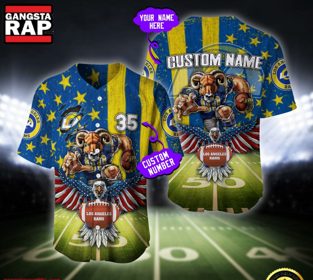 NFL Los Angeles Rams Eagle US Flag x Veterans Custom Name Number Baseball Jersey Shirt