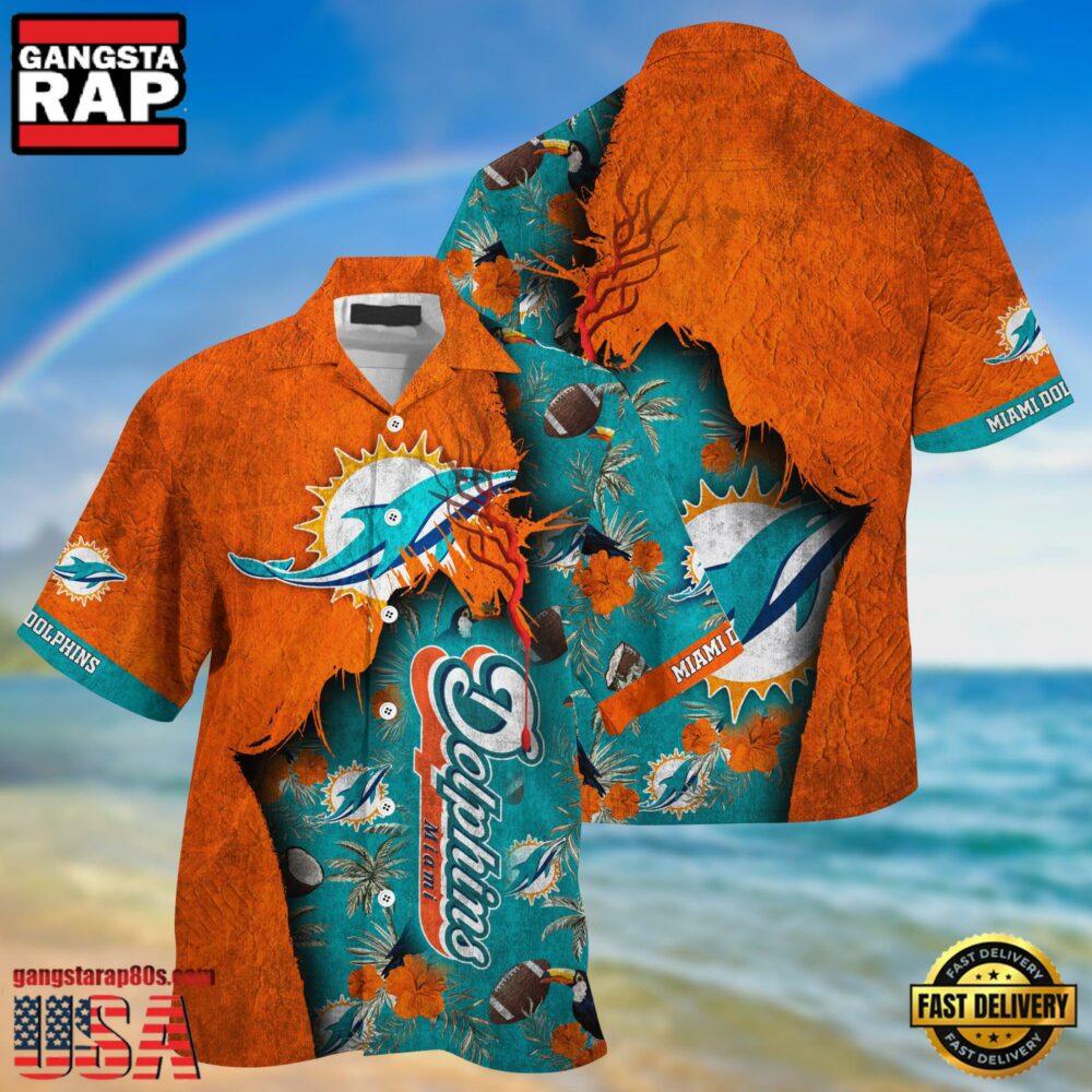- Miami Dolphins NFL Hawaii Shirt With Tropical Flower Pattern