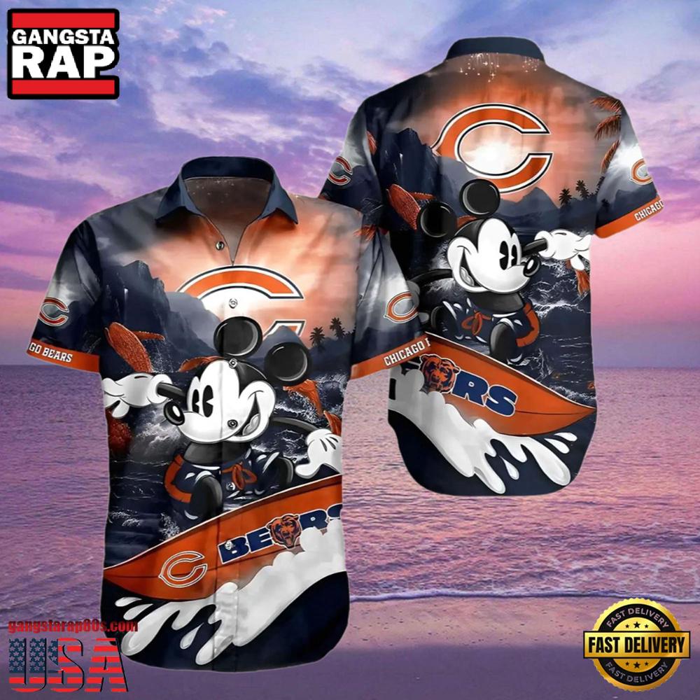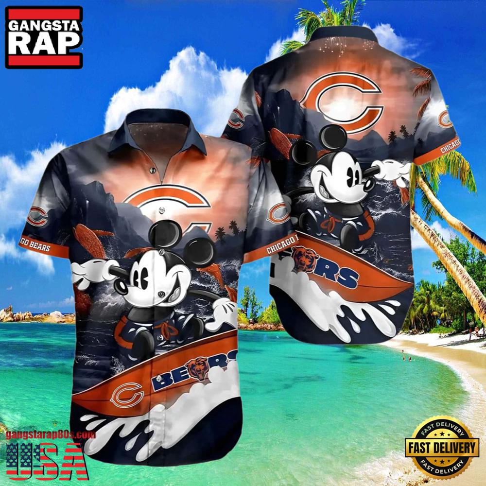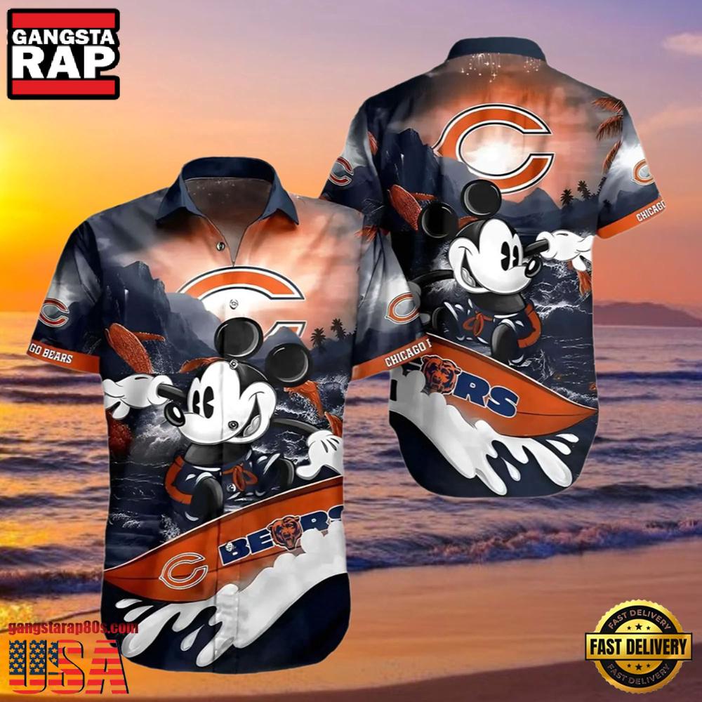 The vibrant Hawaiian backdrop adorned with the iconic Chicago Bears logo and beloved Disney character Mickey Mouse sets this shirt apart. Whether you are attending a game, going to a summer party, or simply enjoying a casual day out, this shirt promises to catch eyes and spark conversations. The premium breathable fabric ensures comfort even on the hottest days, making it a perfect choice not only during the NFL season but for any casual tropical outing.