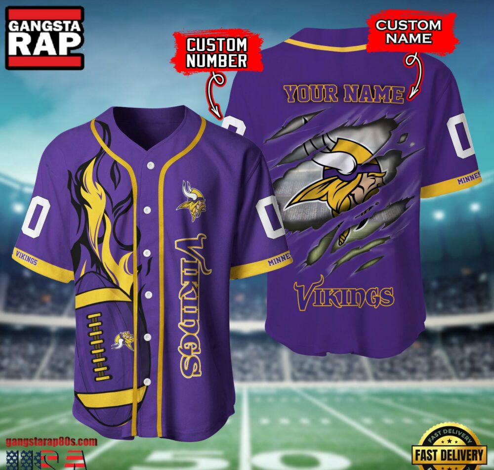 - NFL Custom Name Number Minnesota Vikings Team Baseball Jersey Shirt