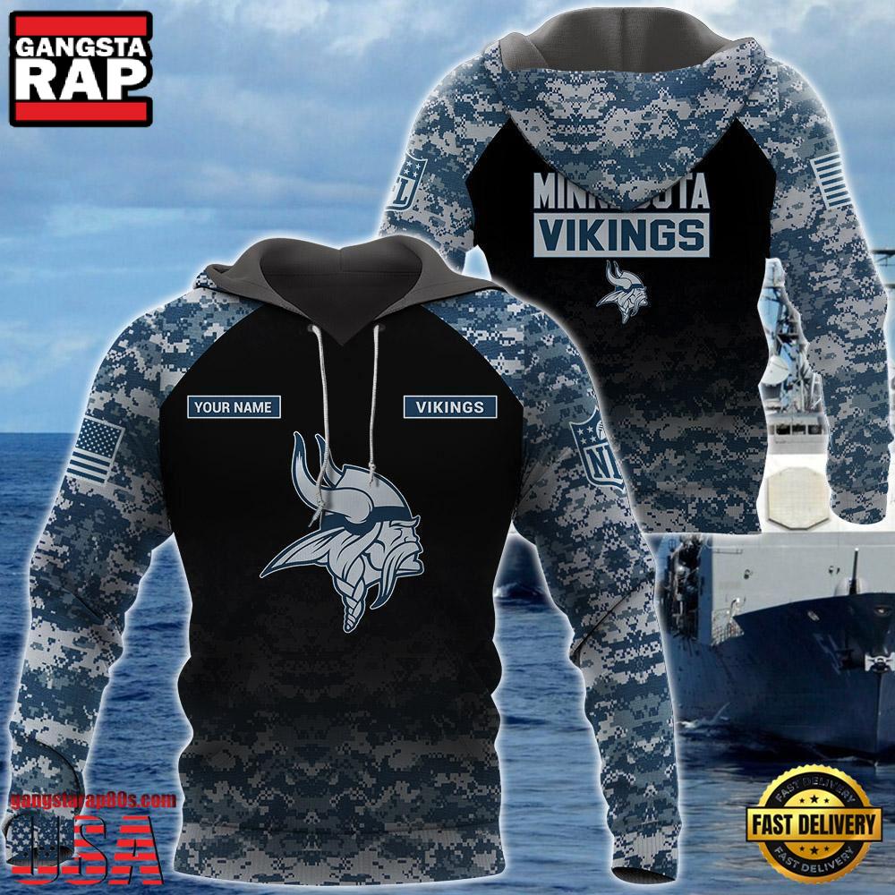 NFL Minnesota Vikings U.S. Navy NWU Camouflage Custom Name Hoodie