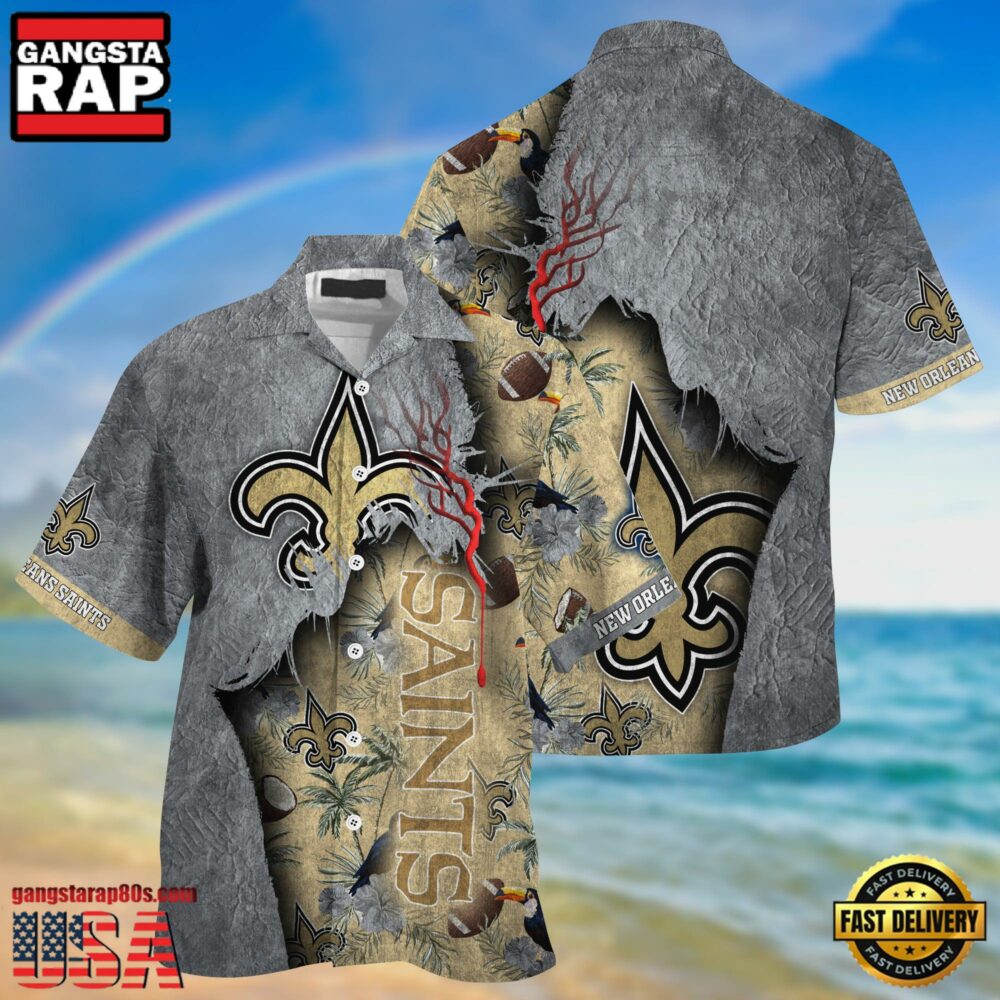 Dive into your passion for both football and fashion with the NFL New Orleans Saints Football Team Logo New Design Hawaii Shirt. This 2023 exclusive design seamlessly blends the iconic Saints logo with the vibrant and festive aesthetics of a traditional Hawaiian shirt, making it the perfect choice for any dedicated fan looking to showcase their team spirit in style.