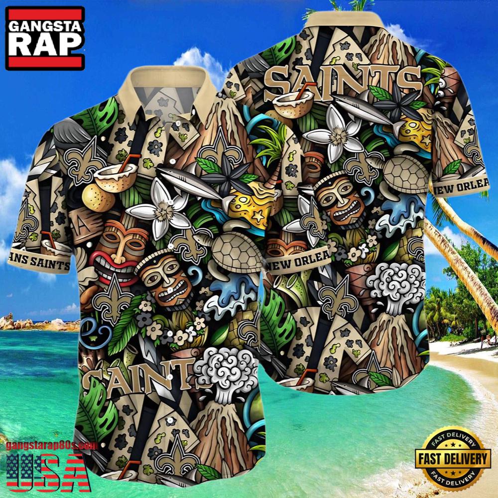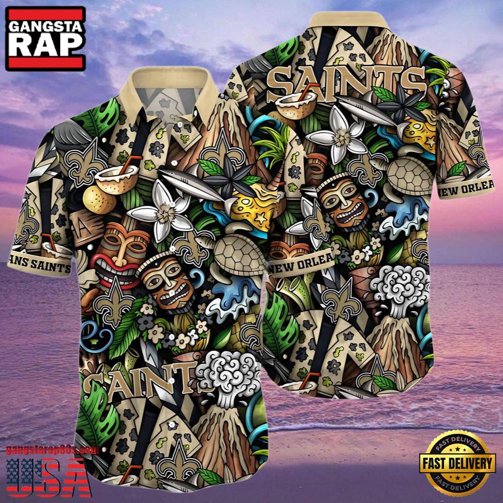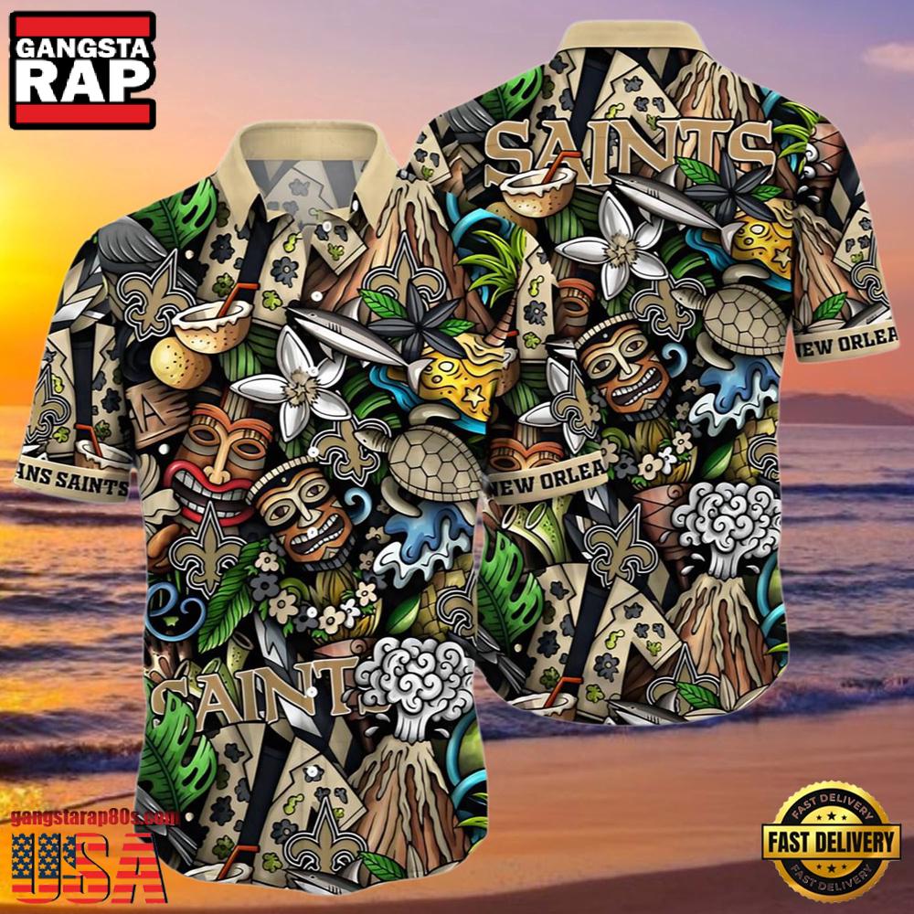 Photos Of NFL New Orleans Saints Hawaiian Shirt Design Island Tiki