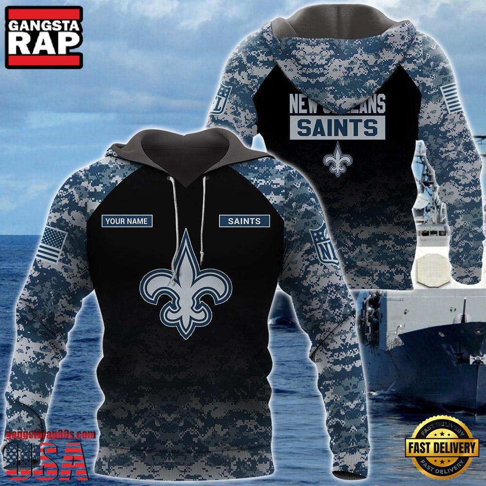 NFL New Orleans Saints U.S. Navy NWU Camouflage Custom Name Hoodie