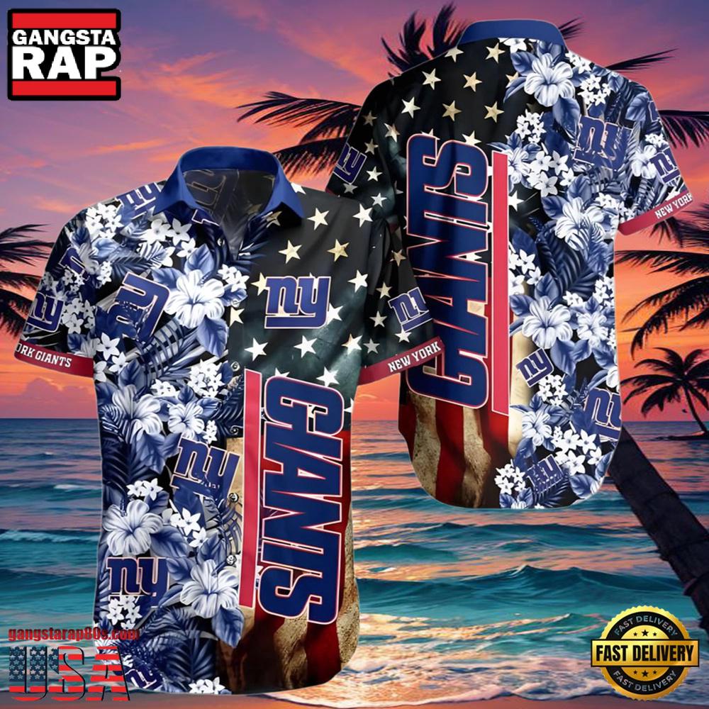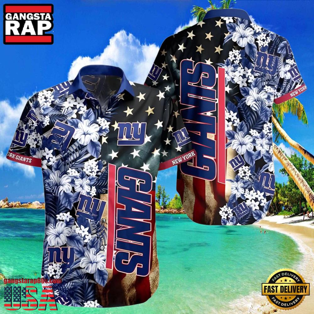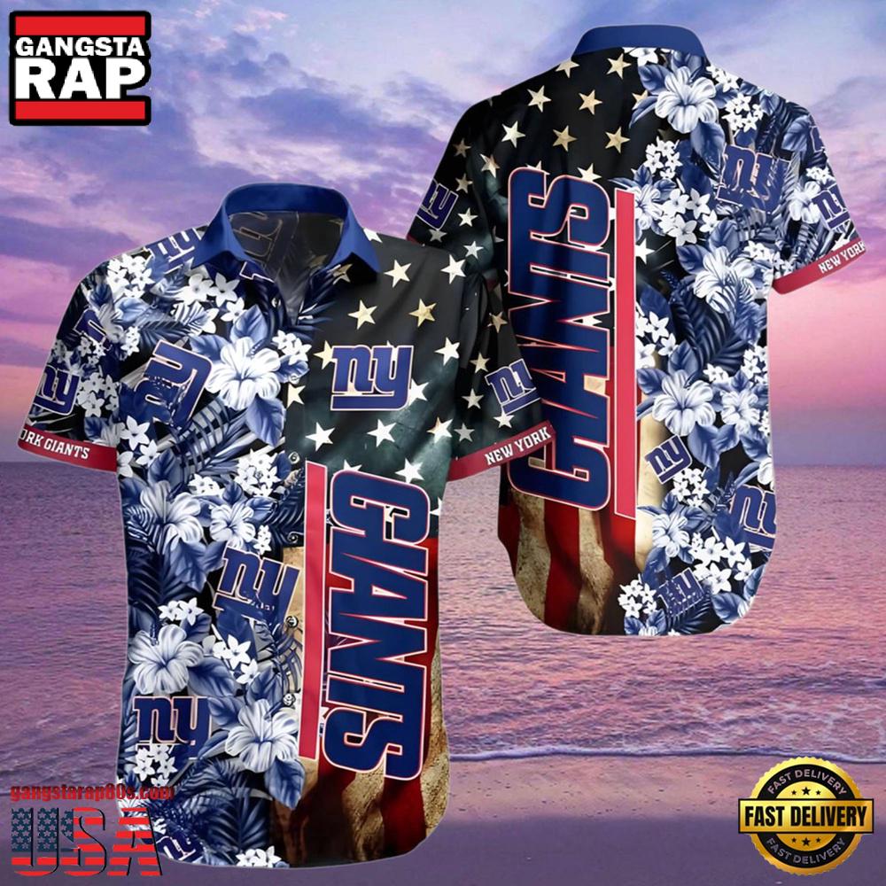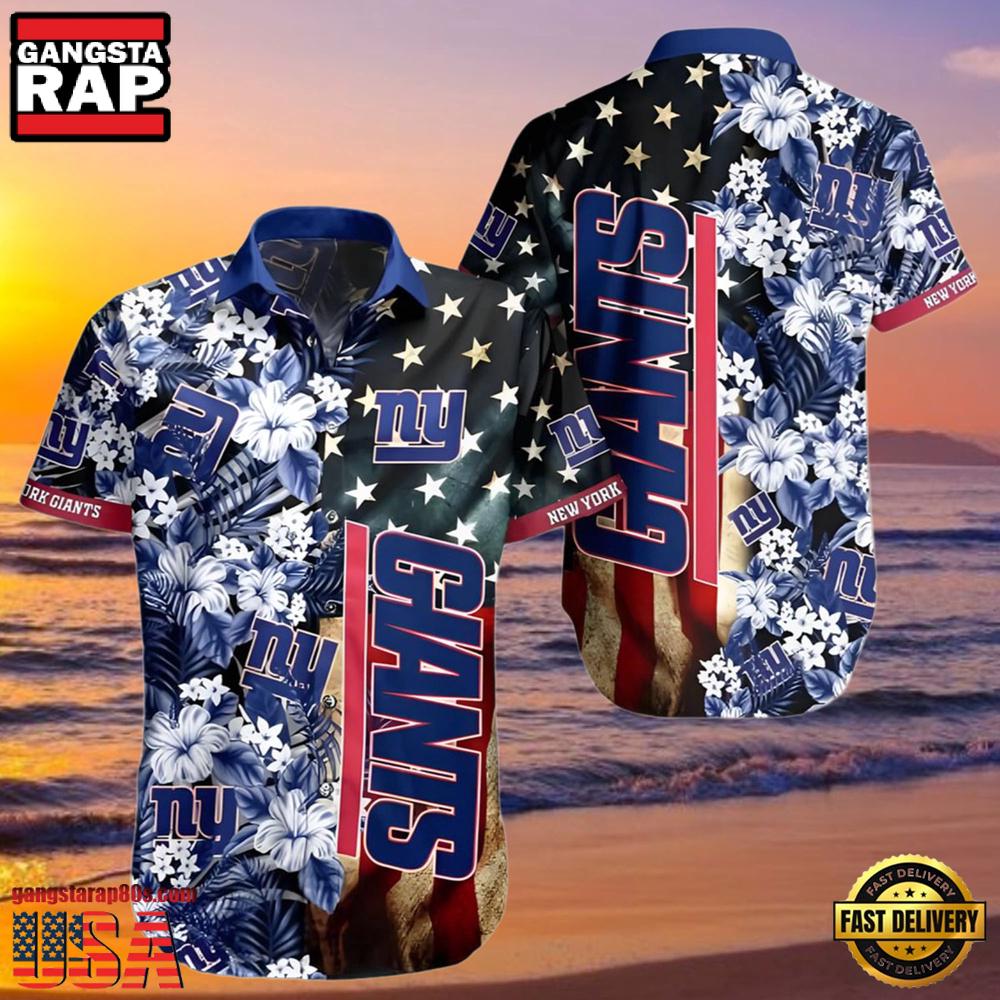 NFL New York Giants Hawaiian Shirt American Flag Flowers Design
