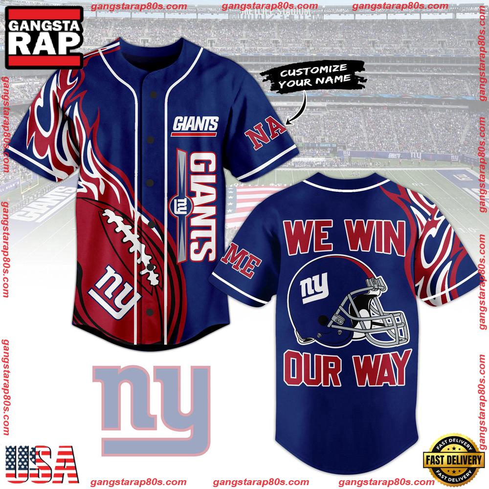 Photos Of NFL New York Giants We Win Our Way Custom Name Baseball Jersey