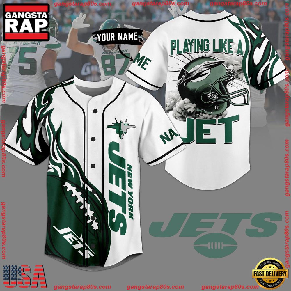 NFL New York Jets Playing Like A Jet Custom Name Baseball Jersey