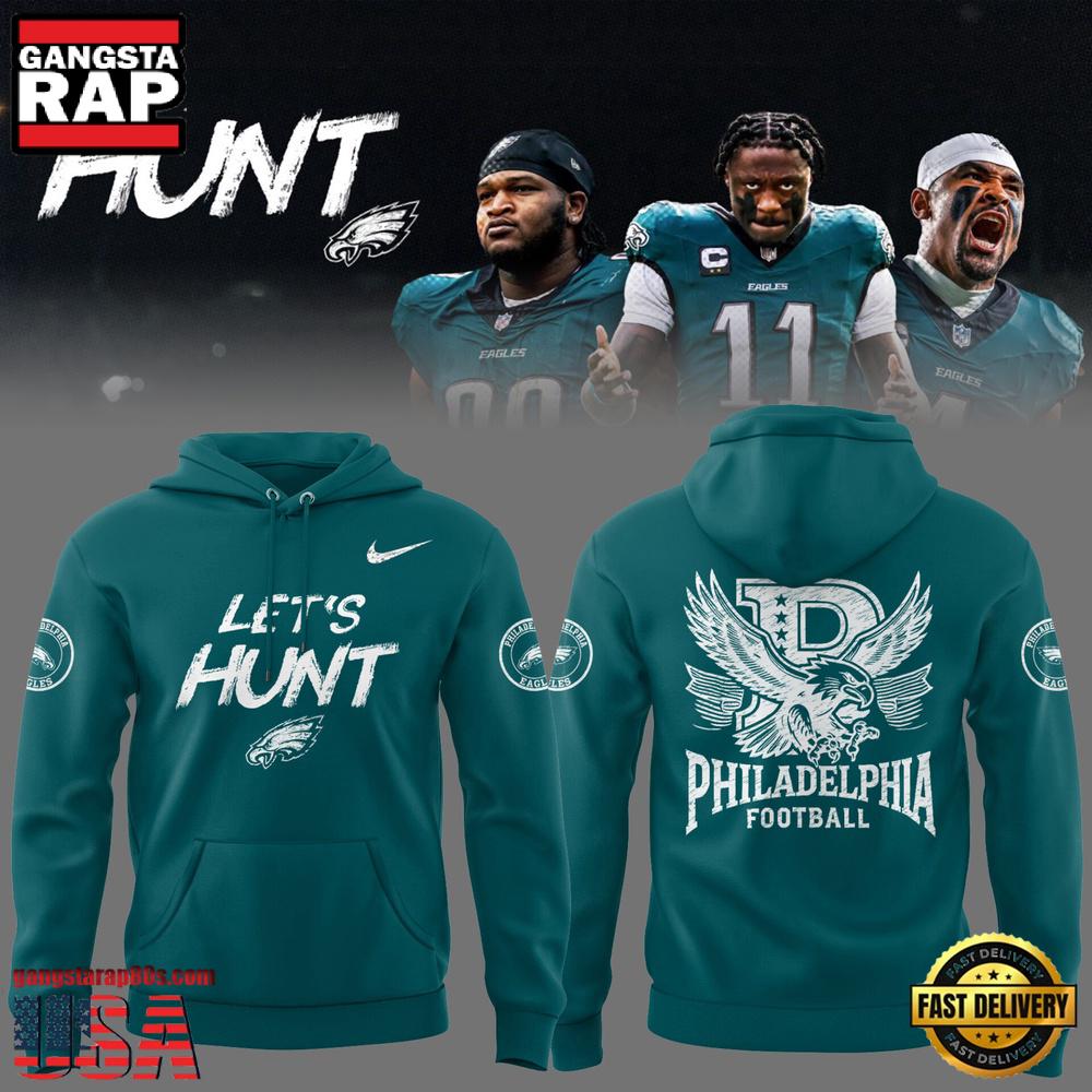 Don’t miss out on this unique combination of modern design and fandom expression. The NFL Philadelphia Eagles Football Let’s Hunt 2025 Green New Design 3D Hoodie is tailored for those who not only support their team but live for the game. Secure yours today and wear your team spirit with style.