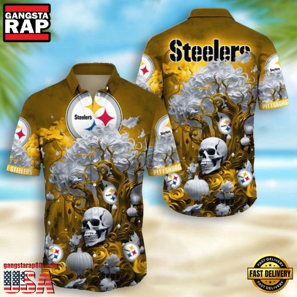 Designed to suit both genders, the NFL Pittsburgh Steelers Skull Pumpkin Hawaiian Shirt makes an excellent pick for those seeking inclusive fashion choices that do not compromise on style or team spirit. Leveraging popular fashion trends, it brings together the cultural mix of Aloha shirts and sports fandom, offering something special for every fan’s wardrobe.