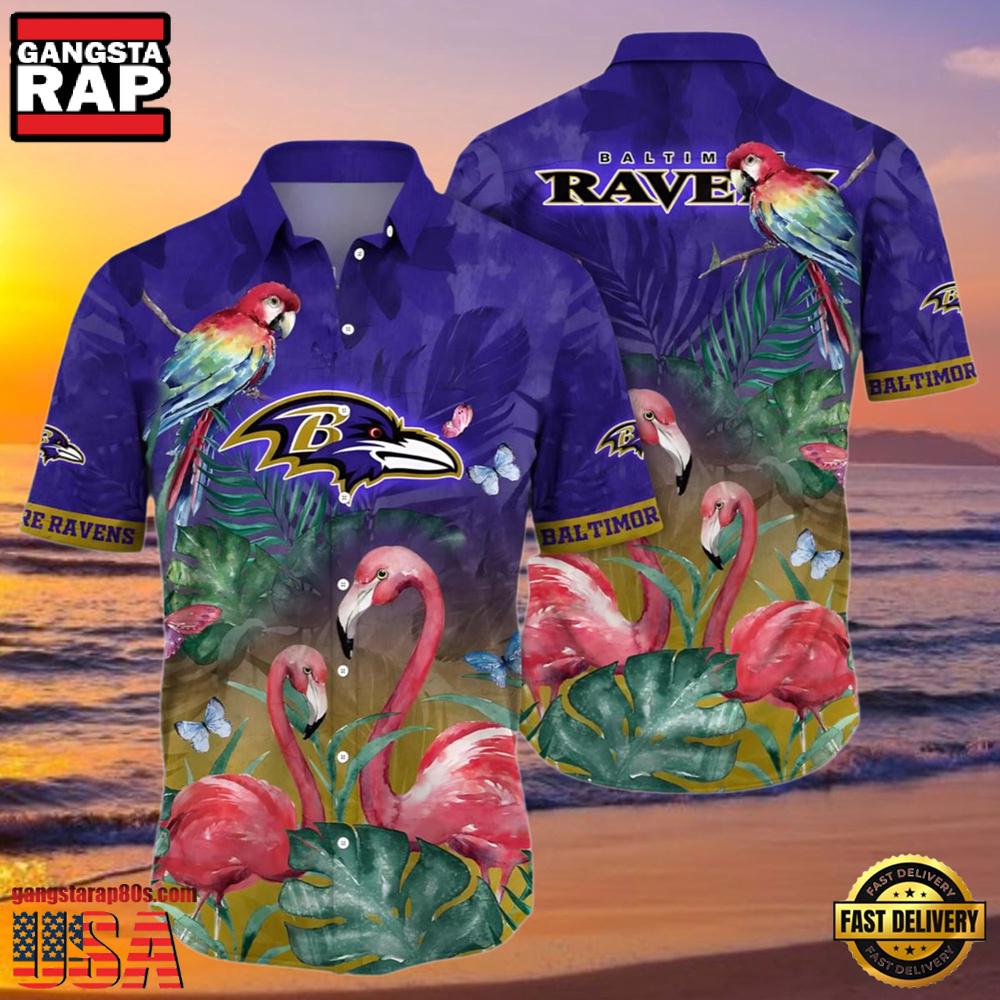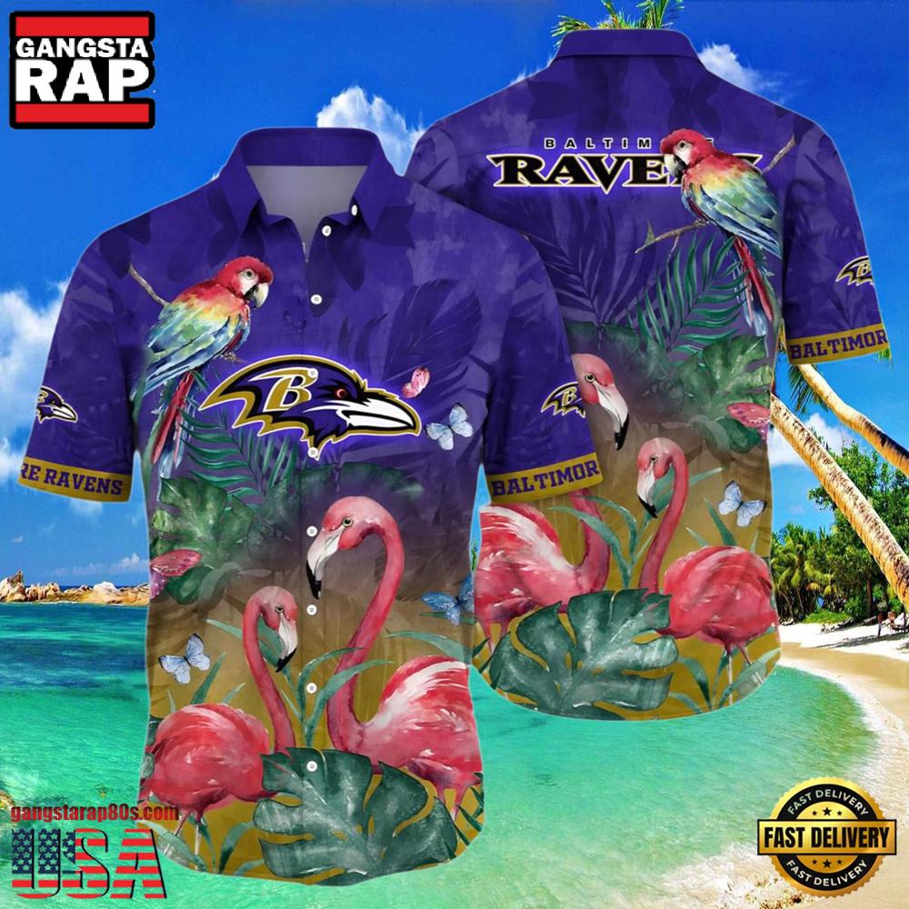 Photos Of NFL Ravens Hawaiian Shirt With Pink Flamingos