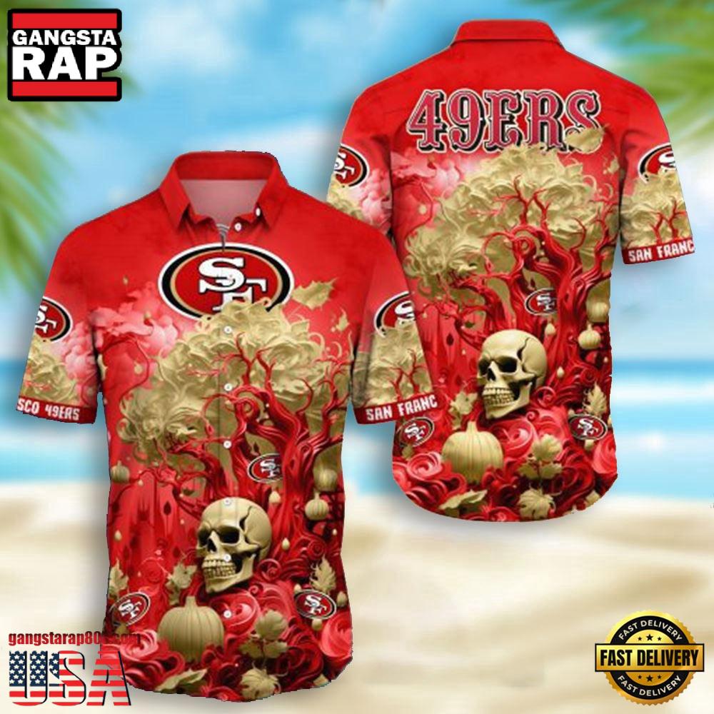 Discover the perfect blend of fandom and fashion with the NFL San Francisco 49ers Skull Pumpkin Hawaiian Shirt for Men and Women. This trendy piece is not just apparel; it’s a statement. As a dedicated fan of the San Francisco 49ers, you can showcase your team loyalty in a subtle yet unique way that stands out during the 2023 NFL season.