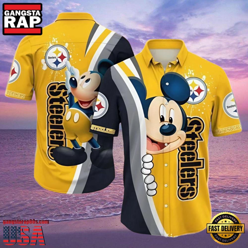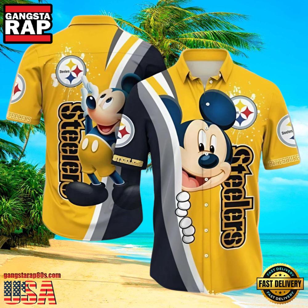 Photos Of NFL Steelers Hawaii Shirt Cartoon Icon Yellow Stripe Mickey