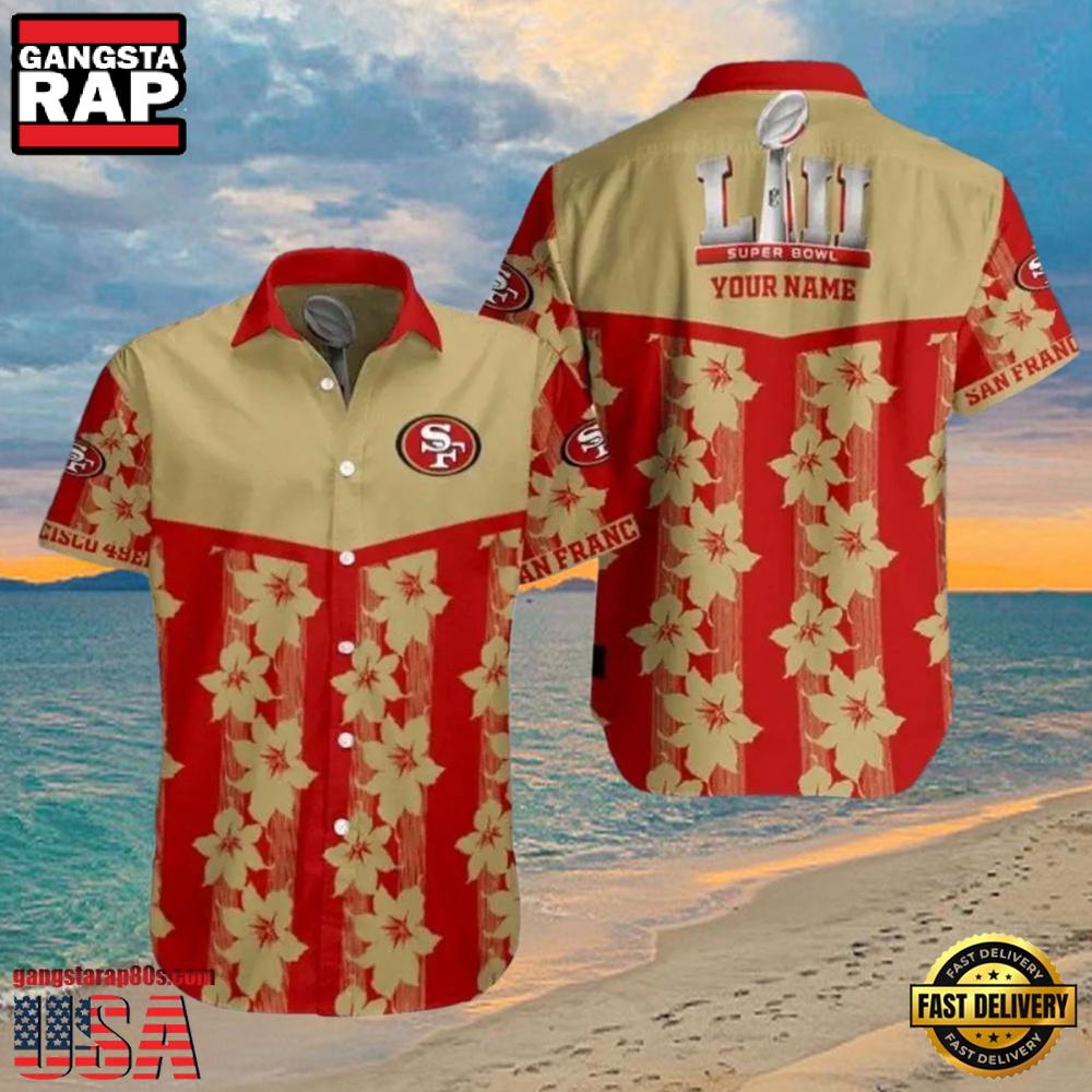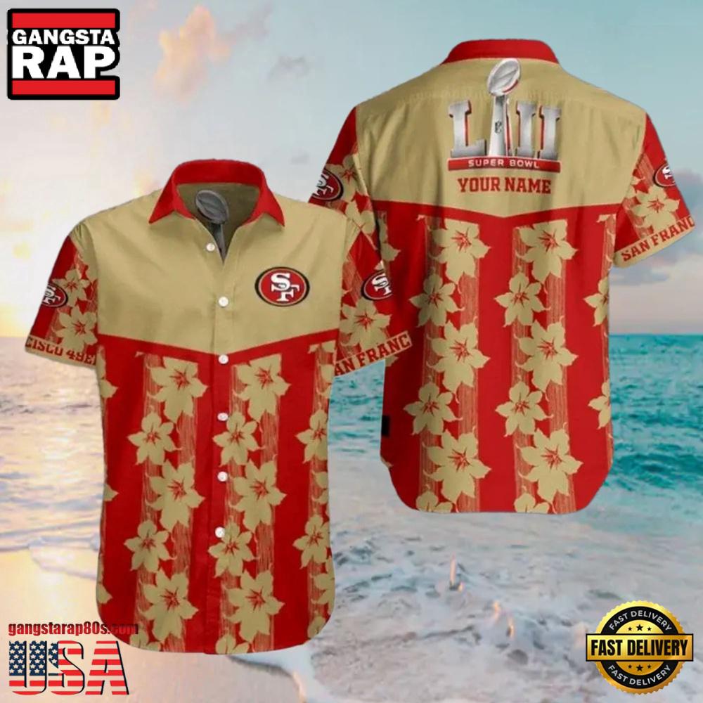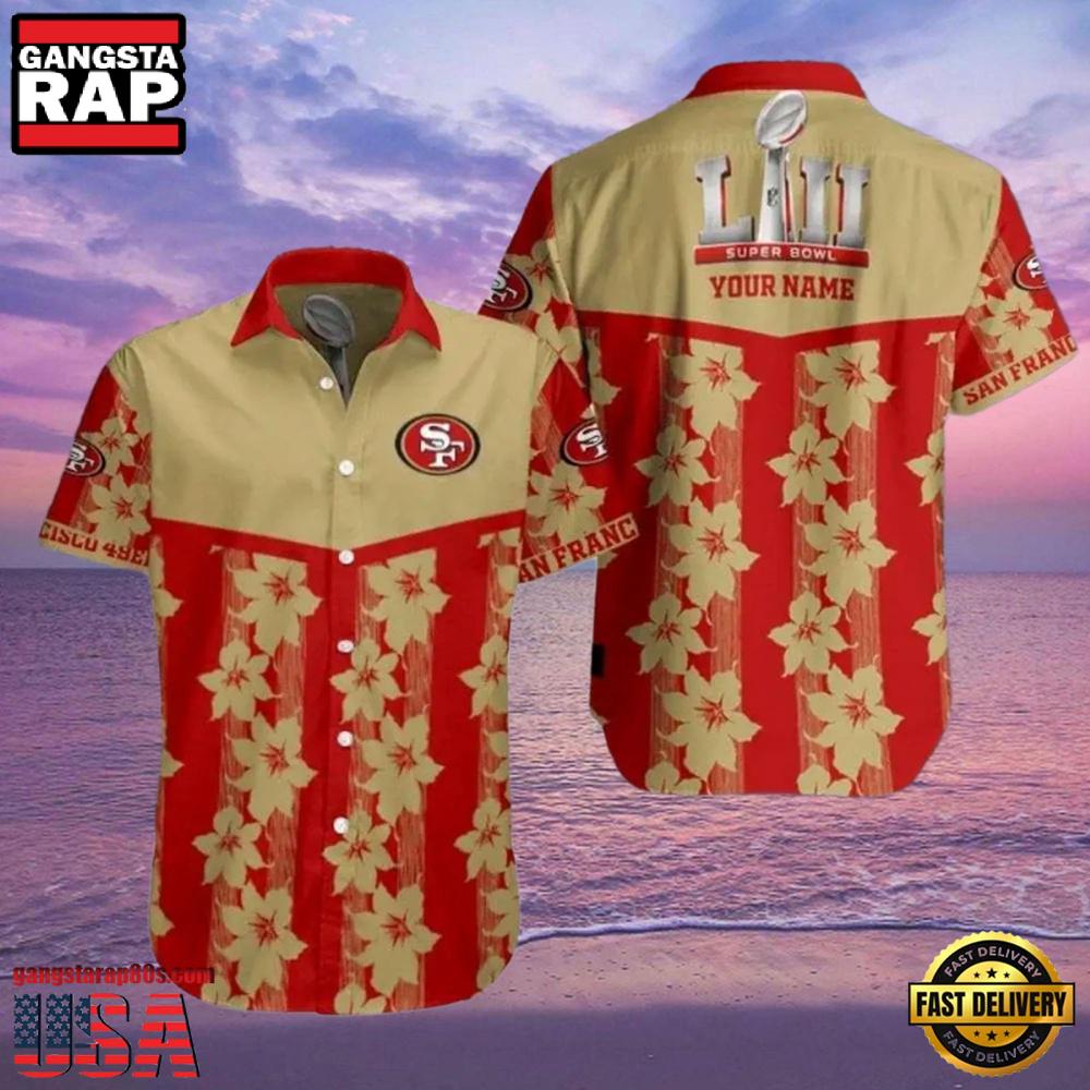 Celebrate your passion for football and the spirit of aloha with this exclusive NFL Super Bowl LIV Commemorative San Francisco 49ers Custom Name Hawaiian Shirt. Tailored to honor the legendary Super Bowl LIV event, this shirt is a must-have for any true 49ers fan. Highlighting a unique blend of sports enthusiasm and island-inspired style, this garment is designed for those who love to make a statement.