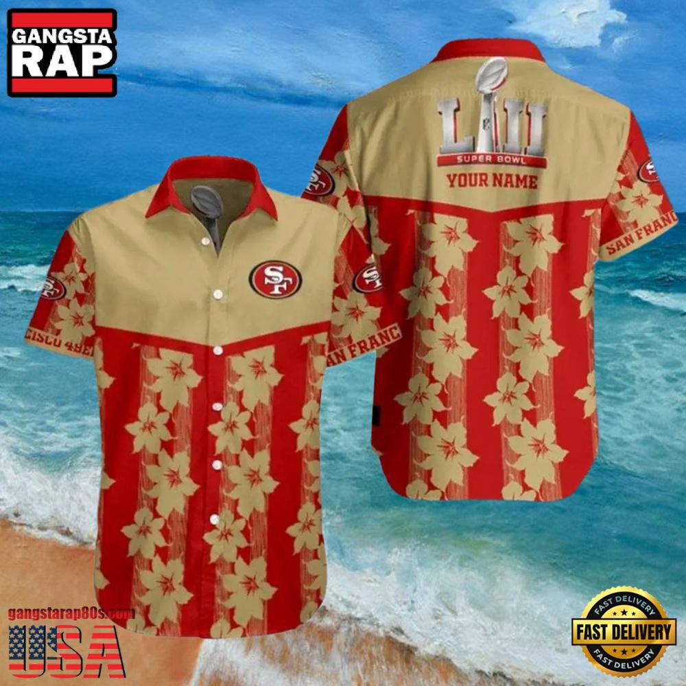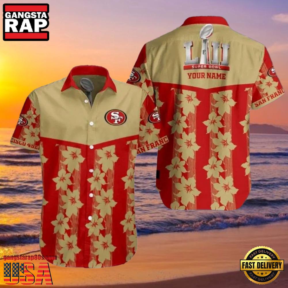 Photos Of NFL Super Bowl LIV Commemorative San Francisco 49ers Custom Name Aloha Hawaiian Shirt
