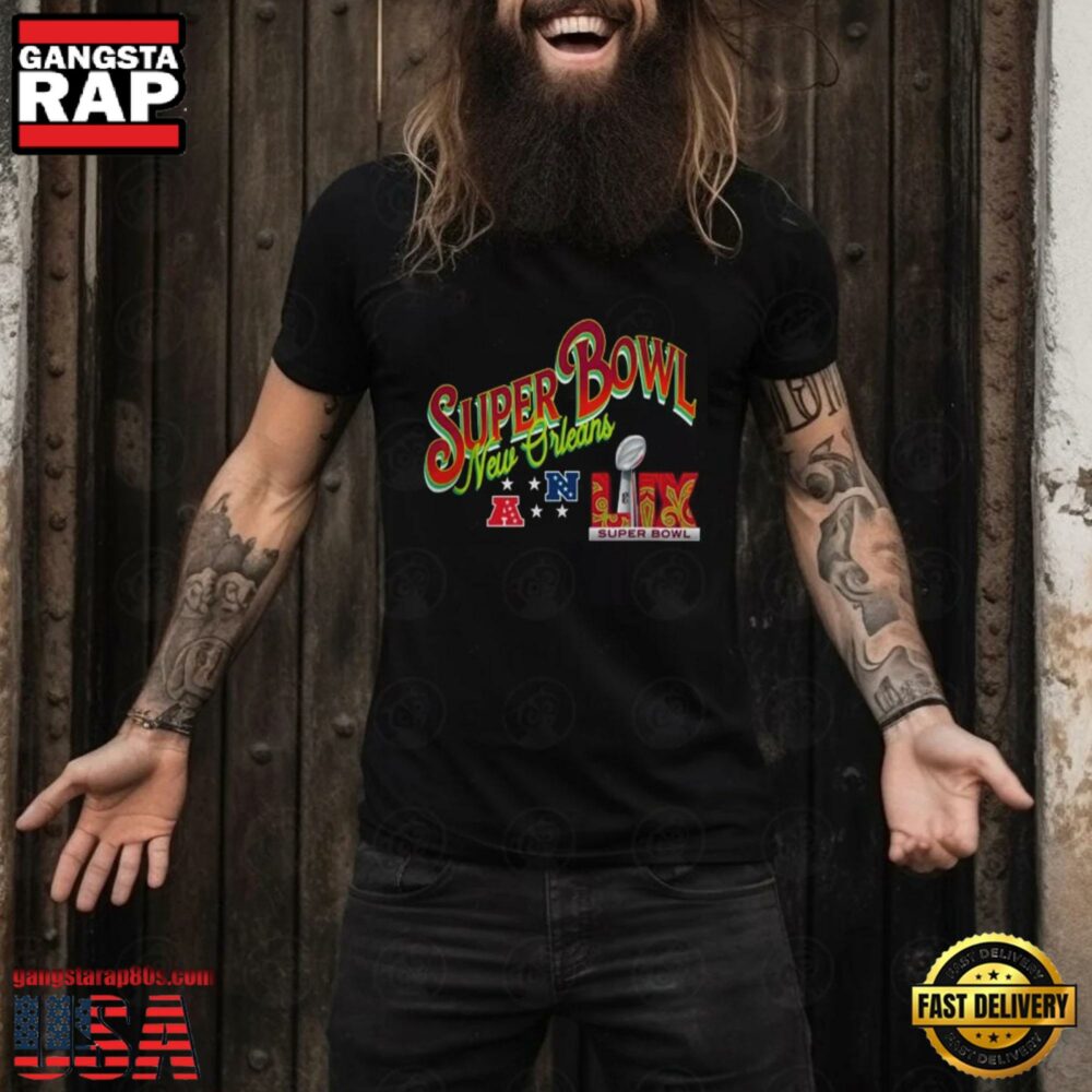The 2025 design captures the essence of the iconic event, featuring intricate illustrations and motifs that pay homage to the heart-pounding excitement of the Super Bowl LIX. Crafted for both comfort and style, this t-shirt is made from premium materials, ensuring a soft feel and a durable fit that withstands the test of time.