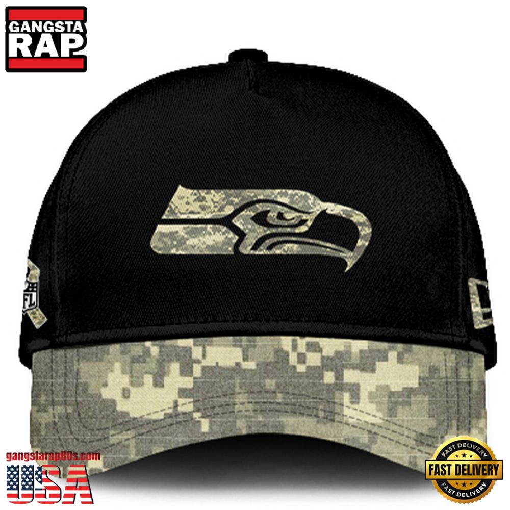 Crafted with a unique black camo design, the cap offers a modern twist on the classic baseball cap, perfect for those who want to support the Seattle Seahawks while staying on top of fashion trends. The camouflage pattern is subtle yet striking, allowing fans to blend their love for sports with their passion for style. This makes the cap a versatile accessory, suitable for game days, casual outings, or even as a statement piece in any sports apparel collection.