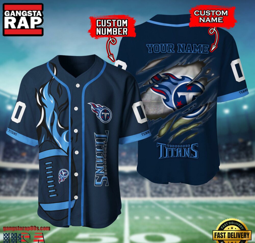 Photos Of NFL Tennessee Titans Team Logo Litmited Edition Baseball Jersey Shirt