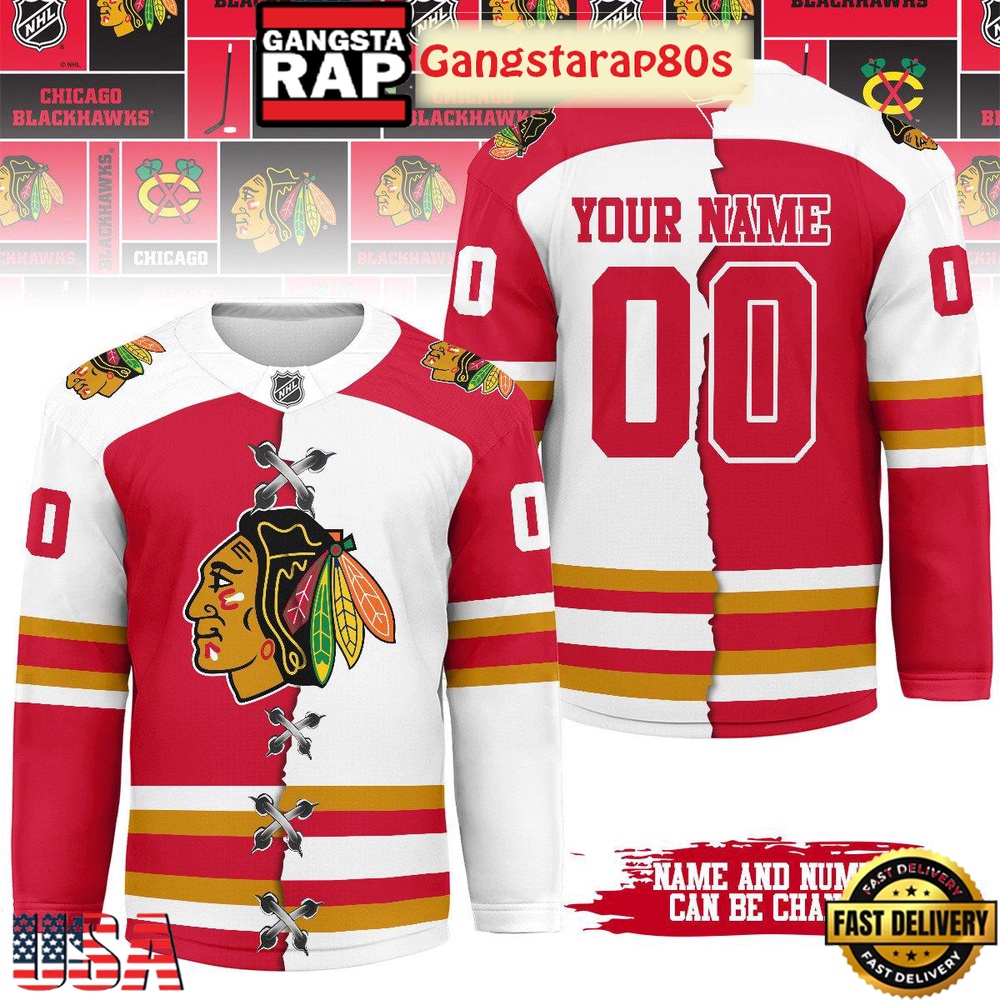 - NHL Custom Name Number Chicago Blackhawks Prince New Design Hockey Jersey