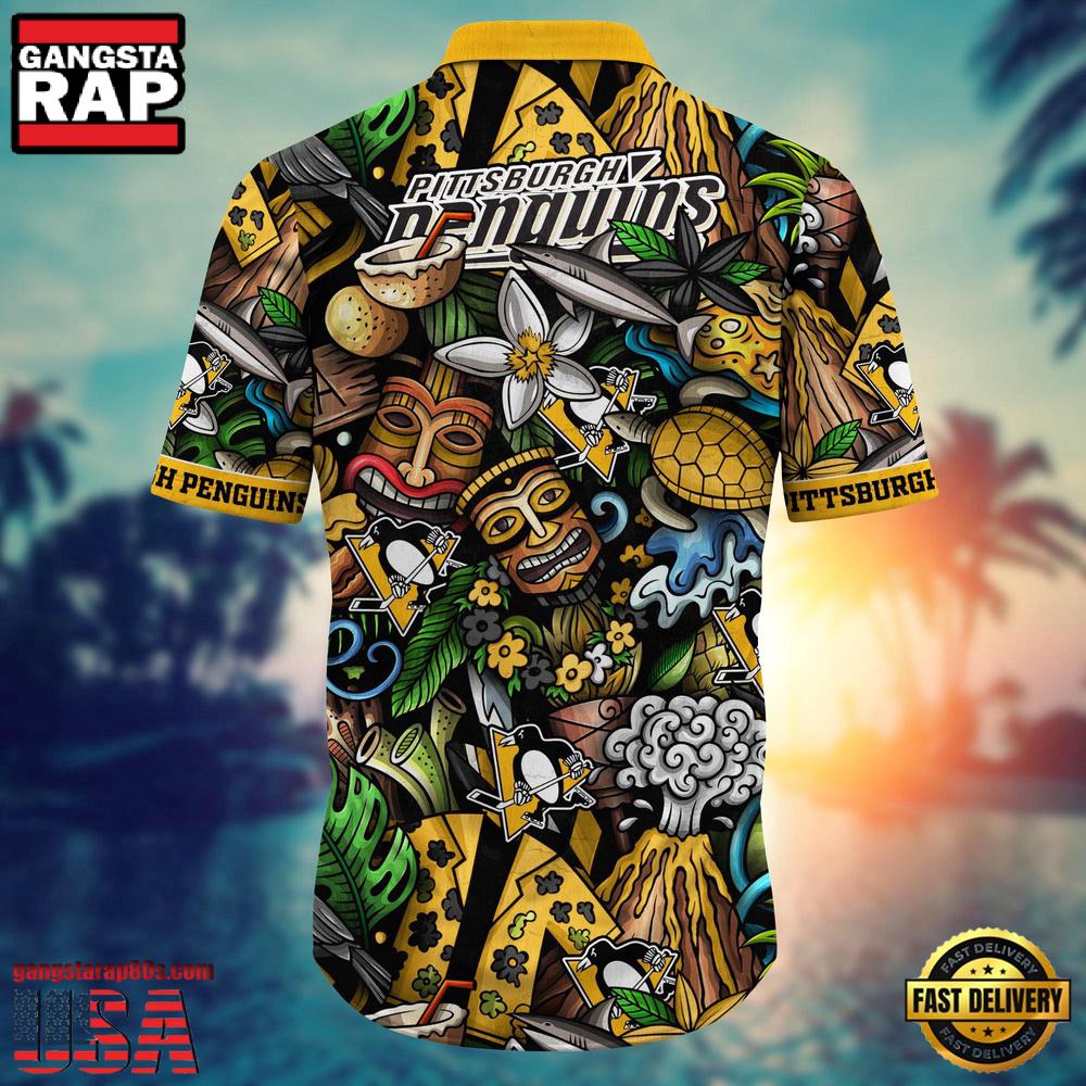 Crafted from premium materials, the Pittsburgh Penguins Hawaiian Shirt features a unique design that integrates the iconic team’s logos and colors into a vibrant, eye-catching pattern. Fans will appreciate the attention to detail, from the distinct team emblems to the subtly woven tropical motifs, making it an ideal choice for game days or casual outings.