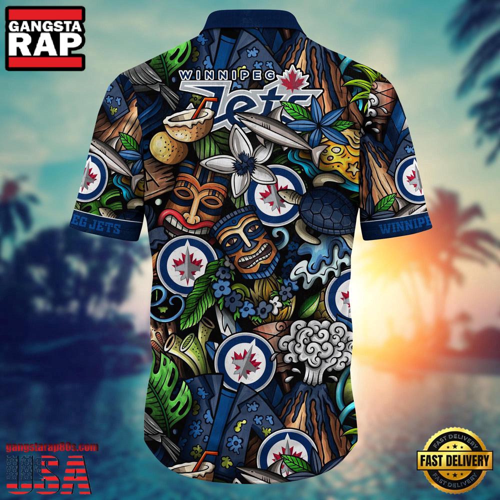 For those searching for a distinctive way to join the NHL fan community, or to stay on top of current fashion trends, this tropical-themed Winnipeg Jets shirt is the ideal addition to your wardrobe. Its eye-catching and bold design makes it a must-have for game day, beach outings, or any casual event where you want to make a statement.