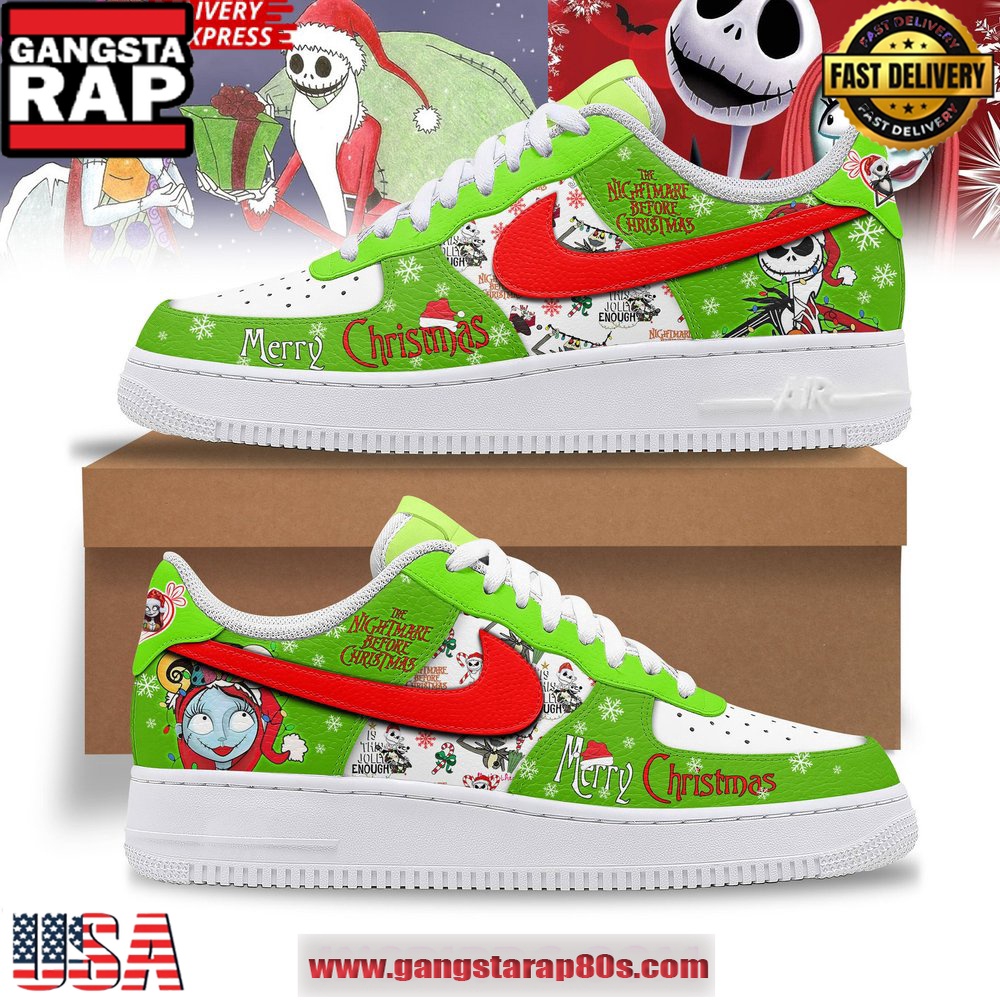 Step into a world where fantasy meets function with the Nightmare Before Christmas Merry Christmas Air Force 1 Running Sneakers. These iconic sneakers bring together the whimsical charm of Tim Burton’s classic film and the timeless style of the Nike Air Force 1 series. Whether you’re a collector or a casual wearer, these sneakers capture a unique blend of holiday spirit and legendary design.