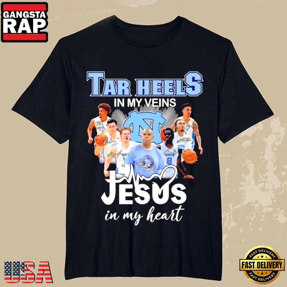 Photos Of North Carolina Tar Heels Basketball Hubert Davis In My Veins Jesus In My Heart T-Shirt