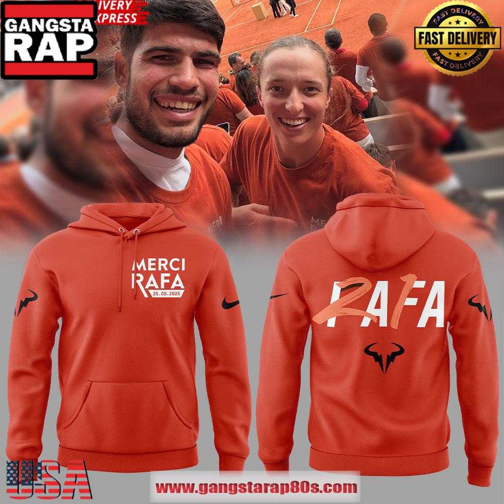 Crafted from high-quality materials, this Merci Rafa 2025 hoodie celebrates Rafael Nadal’s incredible achievements at the Roland Garros. The vibrant orange design is a perfect reflection of the energetic and dynamic nature of Nadal’s game, making it a standout piece in any wardrobe. This hoodie also features a unique all-over print that pays homage to the clay courts of Paris, ideal for fans wanting to show their support during tournament season.