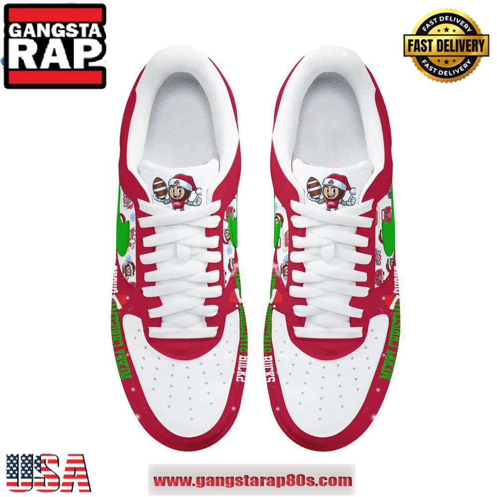 Whether you’re attending a game or enjoying the winter festivities, the Ohio State Merry Christmas Bucks Air Force 1 Running Sneakers are designed to provide both comfort and style. Embrace the holiday cheer and show your team pride with this special edition footwear that’s as much about performance as it is about style.