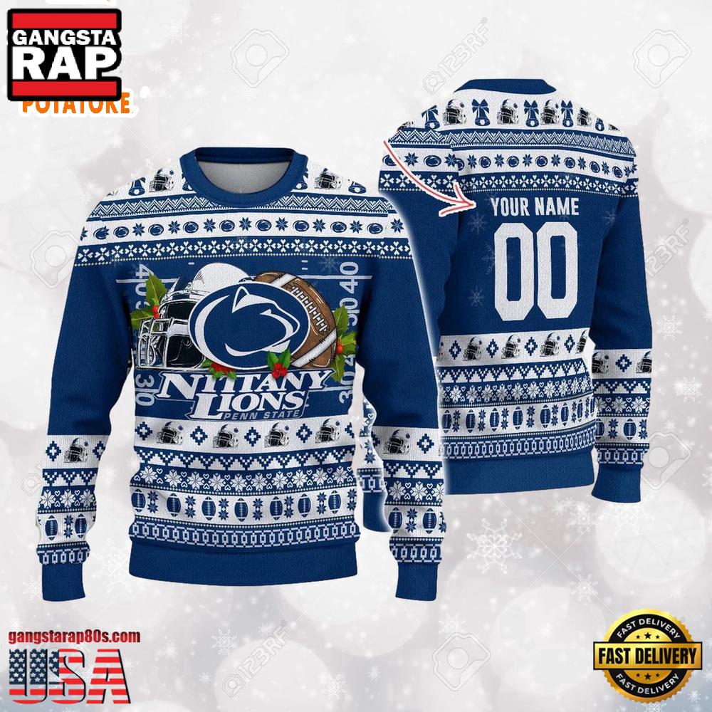 - NCAA Penn State Nittany Lions Football Team Xmas Tree Snow Custom Name Ugly Christmas Sweater