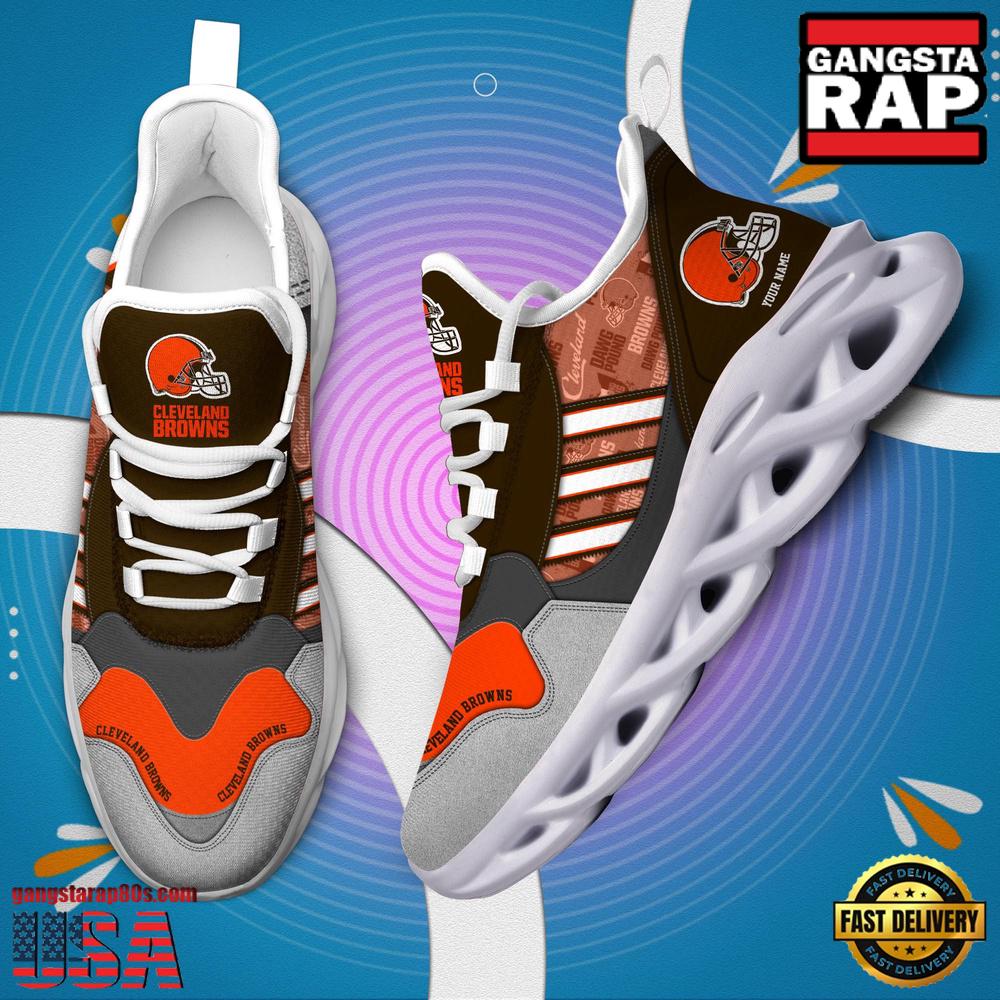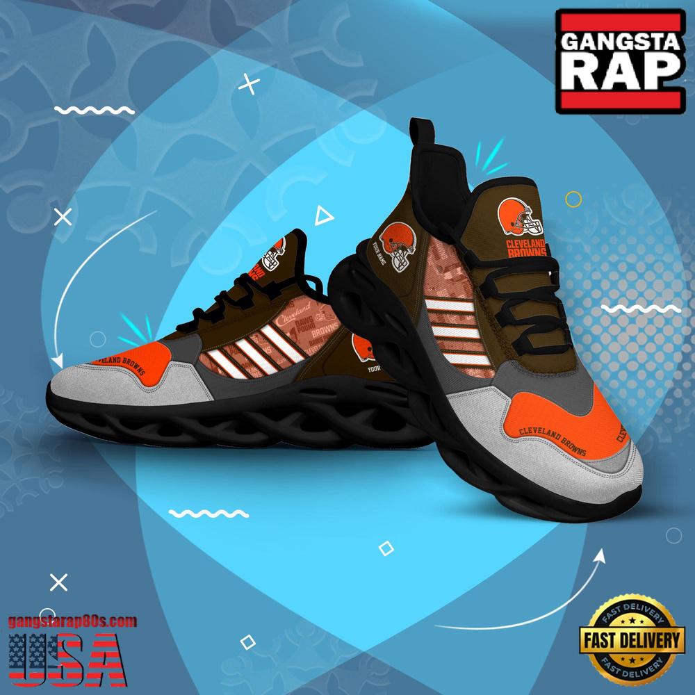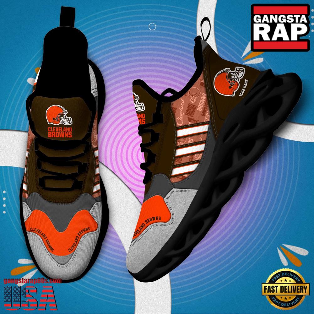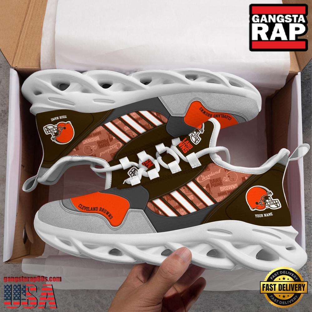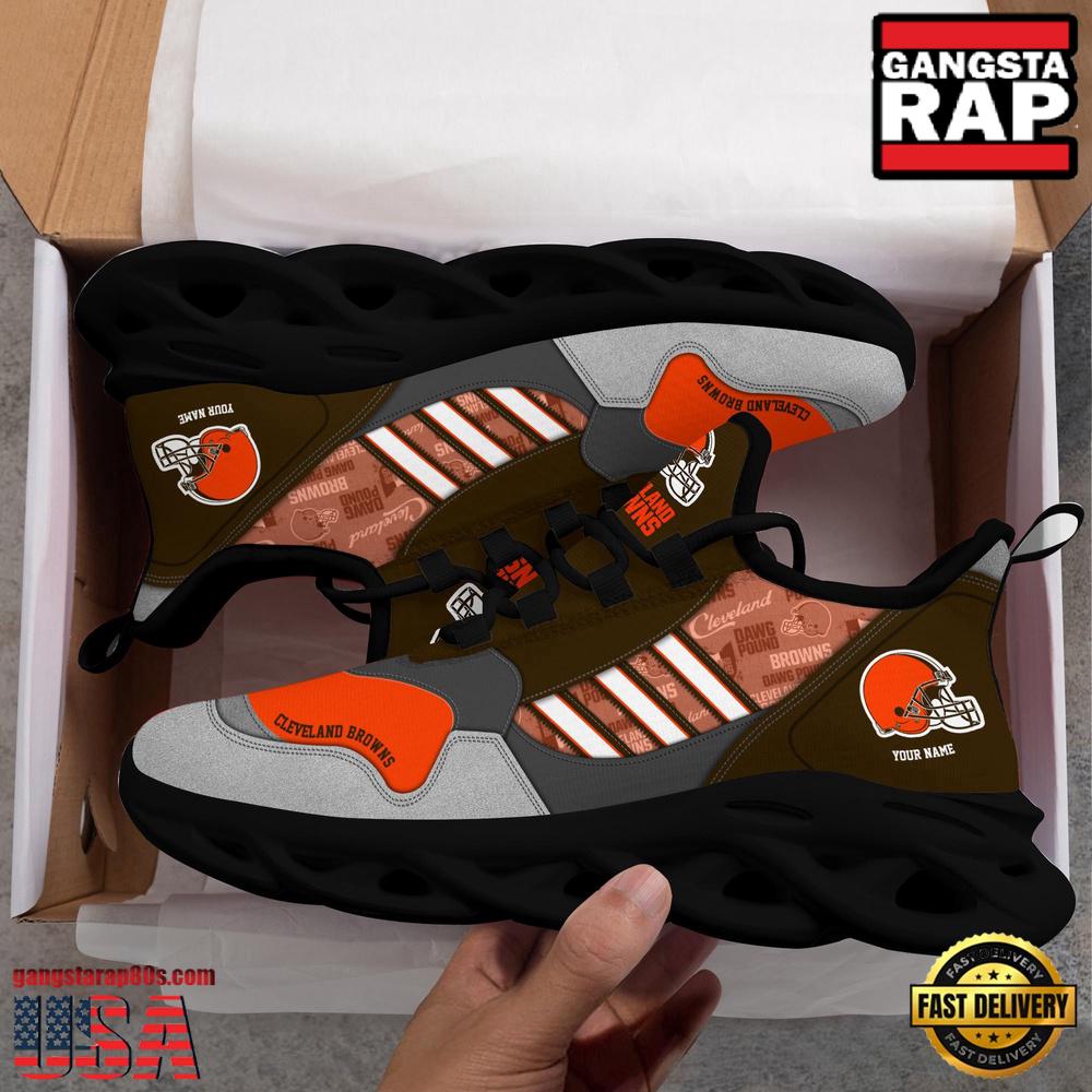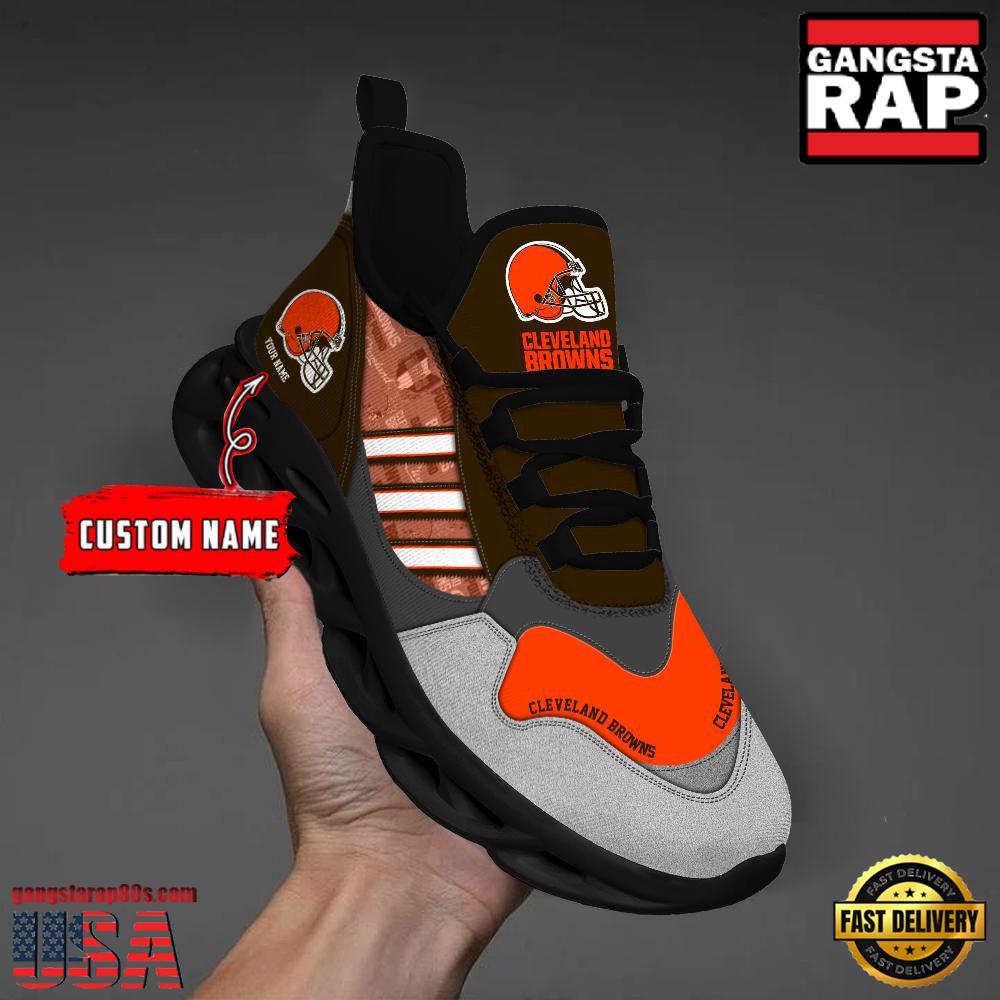 - NFL Custom Name Cleveland Browns Football Team Design Max Soul Running Sneakers Shoes