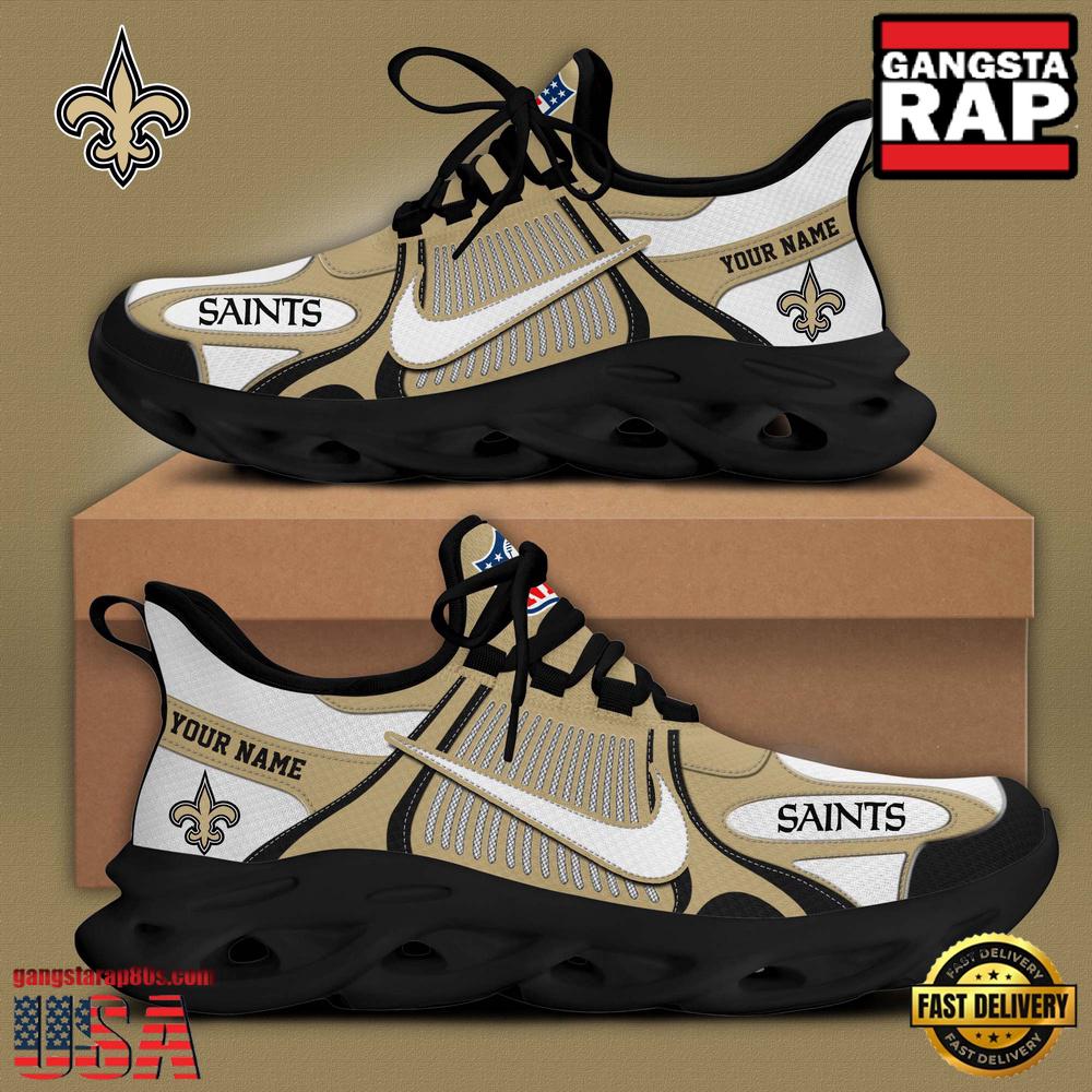 Incorporating the 2023 footwear trends, these shoes not only capture the essence of cutting-edge fashion but also prioritize wearing comfort. The bold clunky design with a Max Soul sole provides superior cushioning, making them perfect for both game days and casual outings. These sneakers are fully customizable, allowing fans to create their unique look while maintaining the team’s identity. With the growing trend of personalized fan apparel, these shoes make a thoughtful gift for any supporter of the Saints.
