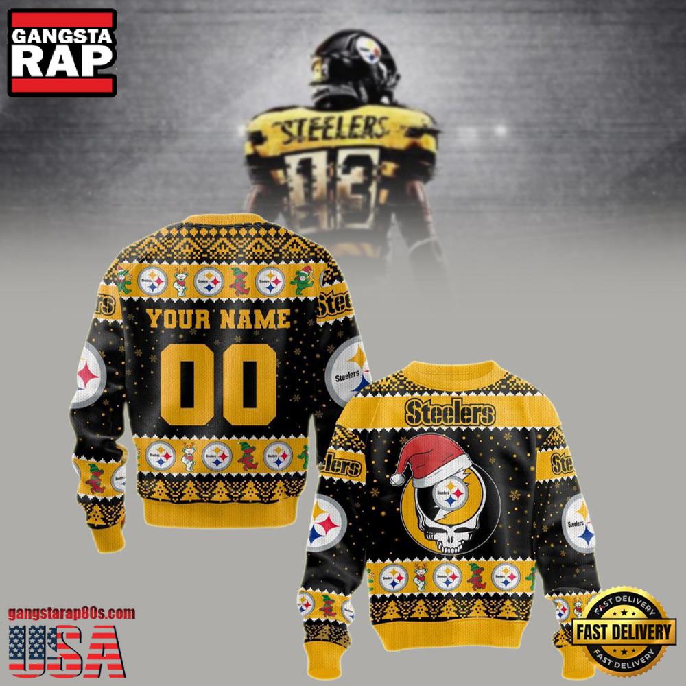 Personalized Pittsburgh Steelers Grateful Dead Christmas Ugly Sweater