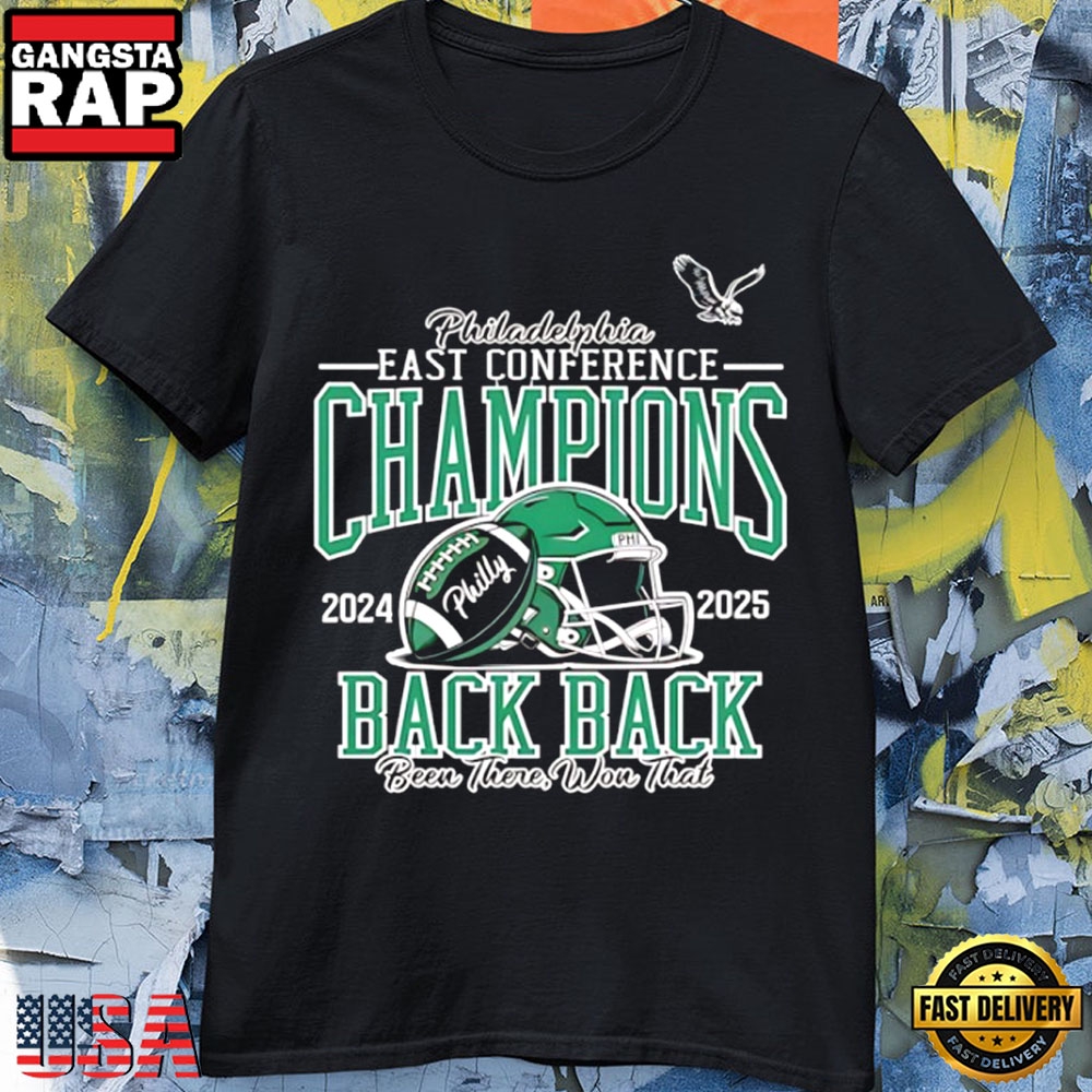 Philadelphia Eagles East Conference Champions 2025 Back To Back Been There Won That T Shirt Introducing our 2D Shirt, a unique blend of style and creativity. Crafted from high-quality fabric, this shirt features a captivating 2D graphic design that adds a bold statement to your wardrobe. With its vibrant colors and intricate details, it offers a modern twist on classic apparel. Elevate your fashion game with our 2D Shirt, designed to turn heads and express your individuality in style.
