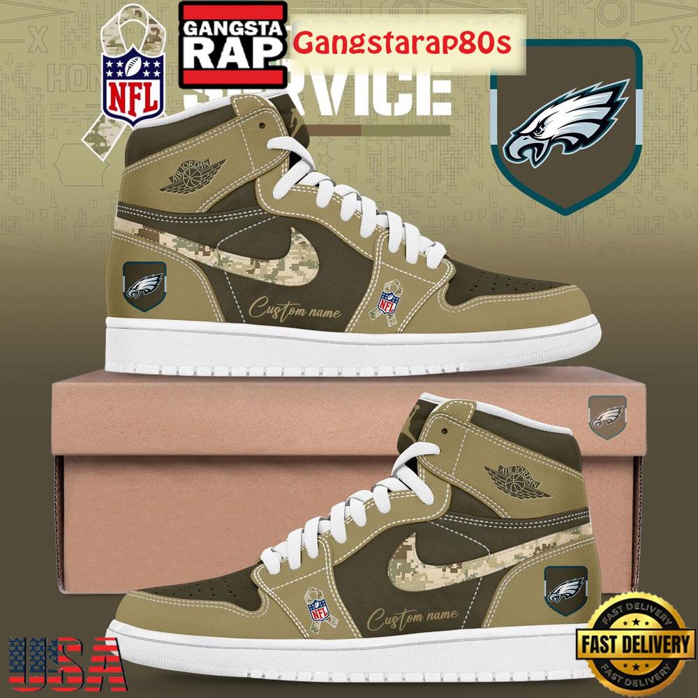 Philadelphia Eagles Salute To Service Limited Edition Custom Air Jordan 1 Sneakers Shoes