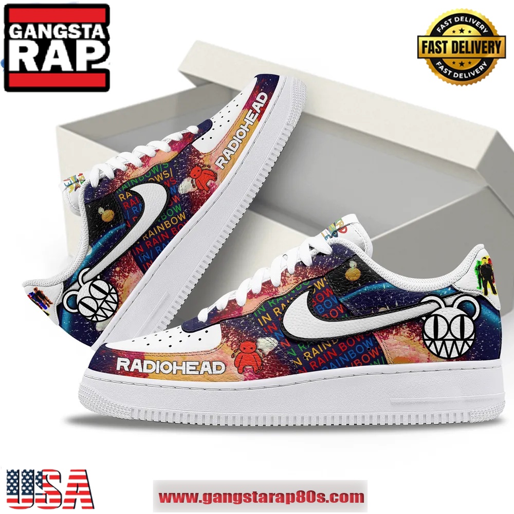 Discover the unique blend of music and style with the Radiohead In Rainbows Air Force 1 Sneakers, a must-have for both sneakerheads and music enthusiasts. Drawing inspiration from the groundbreaking 2007 album, this exclusive pair features a stunning array of design elements that seamlessly bring together both worlds.
