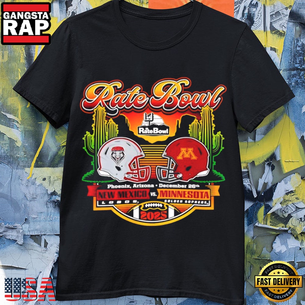 Photos Of Rate Bowl 2025 New Mexico Lobos vs Minnesota Golden Gophers Horizon Matchup T Shirt
