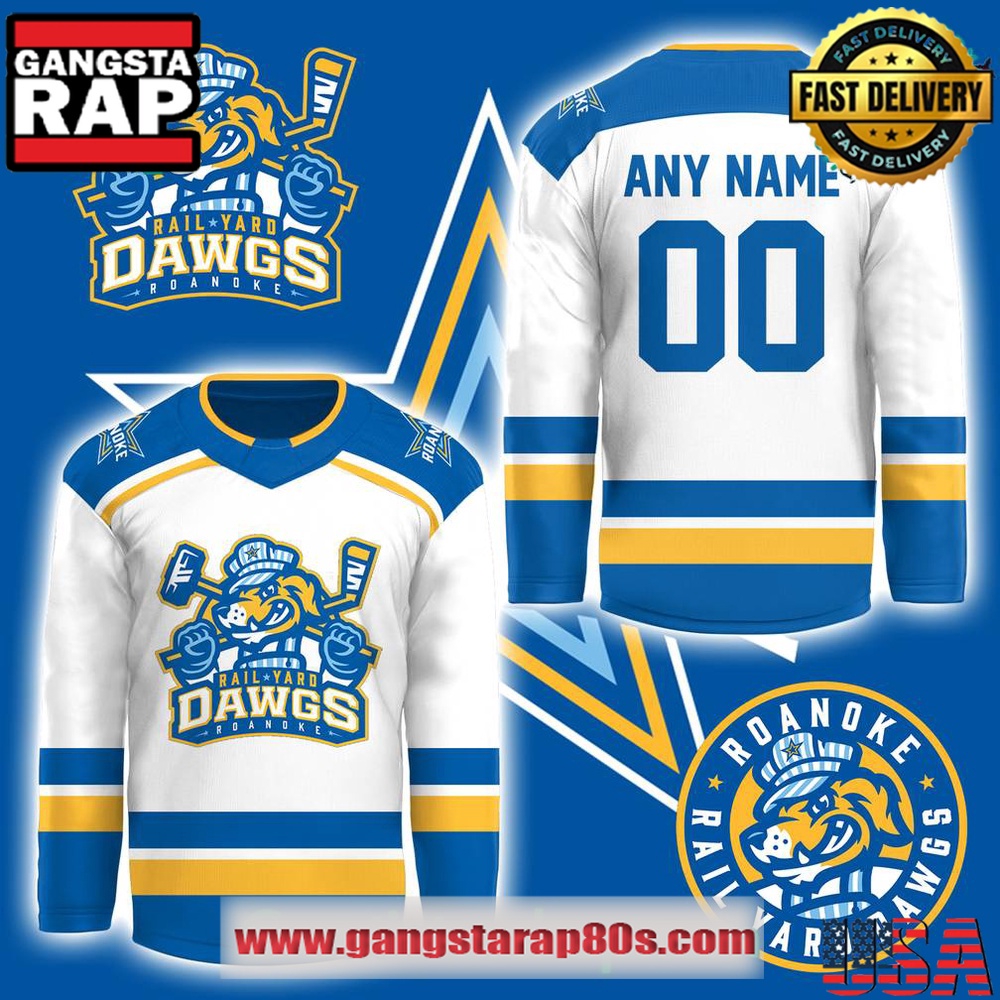Roanoke Rail Yard Dawgs Limited Edition New Logo White Custom Hockey Jersey