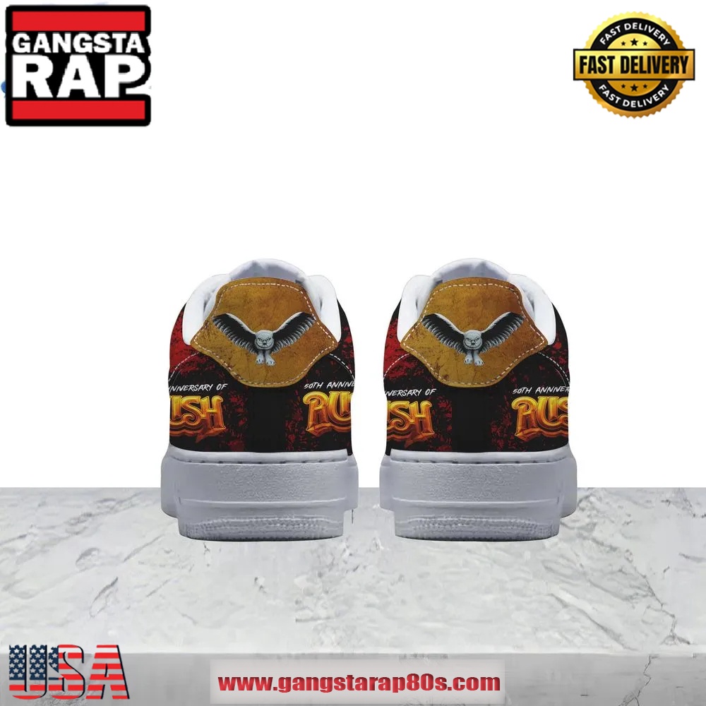 Indulge in the nostalgia of a remarkable era with the 50th Anniversary Rush Air Force 1 Sneakers, where each step you take is a salute to rock history. Wear your passion proudly and be a part of a celebration that echoes the spirit of one of the greatest bands of all time.