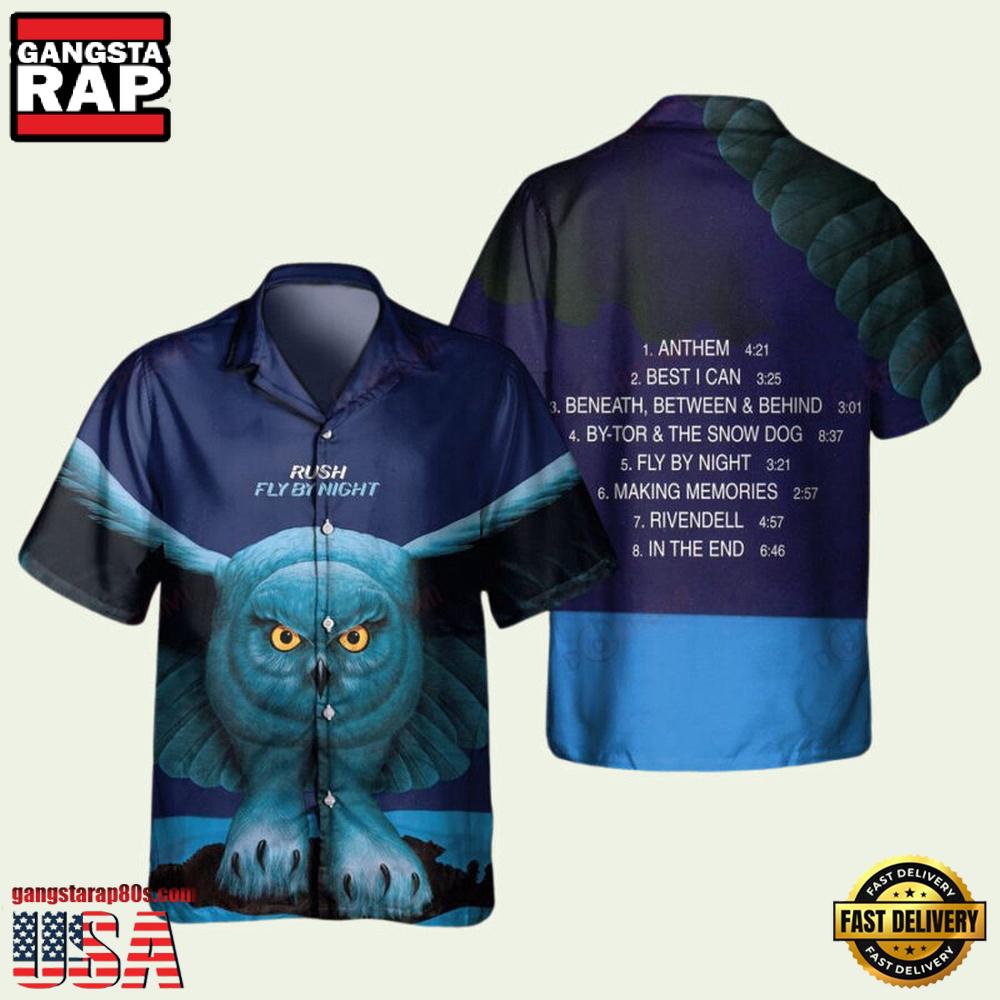 Rock your style with the Rush Rock Band Fly By Night Hawaiian Shirt, a must-have piece for any music enthusiast. This unique apparel pays homage to the legendary band Rush and their iconic 1975 album, Fly By Night. Featuring a captivating design that blends vibrant tropical Hawaiian motifs with the unmistakable owl from the album cover, this shirt is perfect for fans who want to express their love for classic rock in a stylish and unforgettable way.